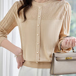 ☆The moderately puffed sleeve design gives a feminine impression while covering the upper arms .