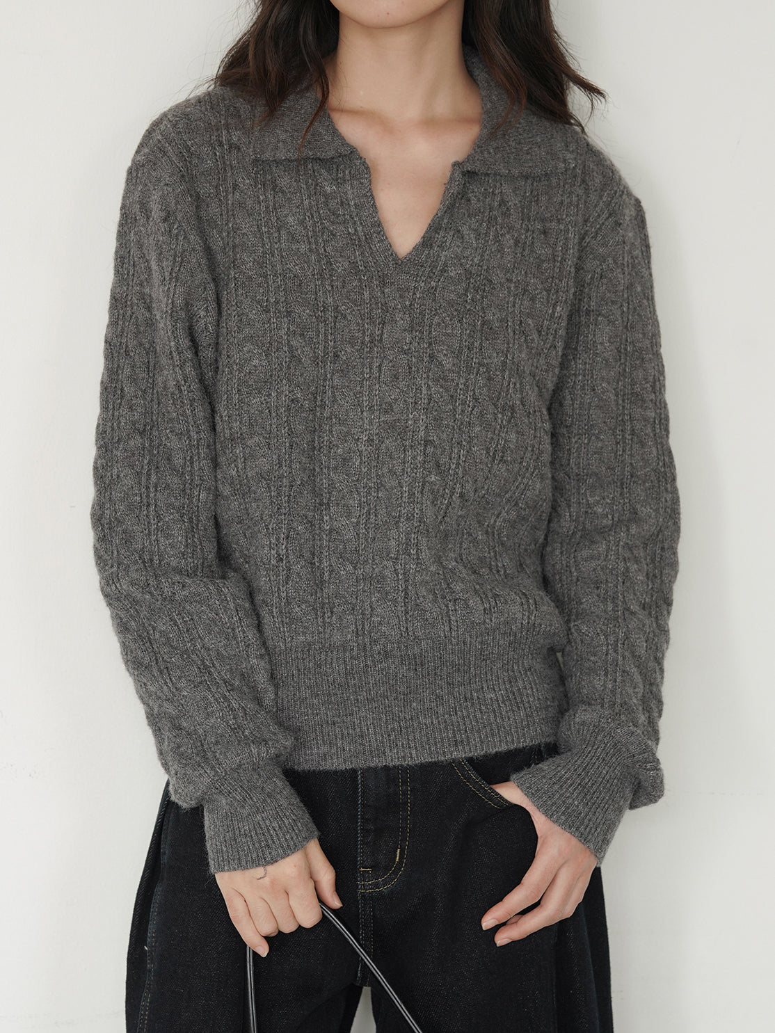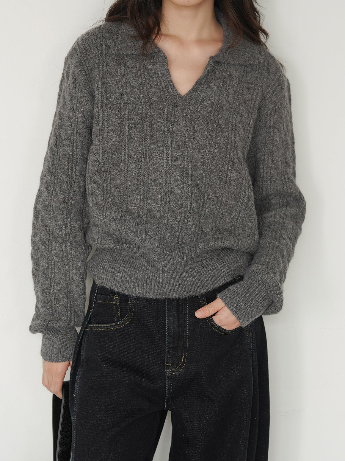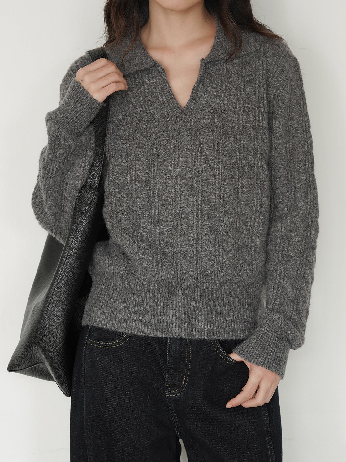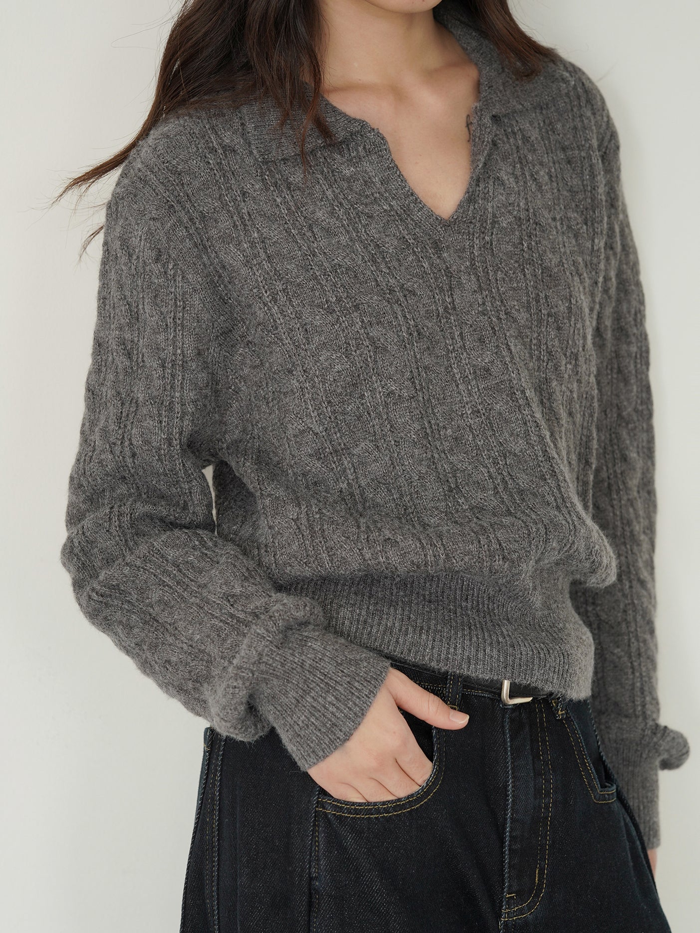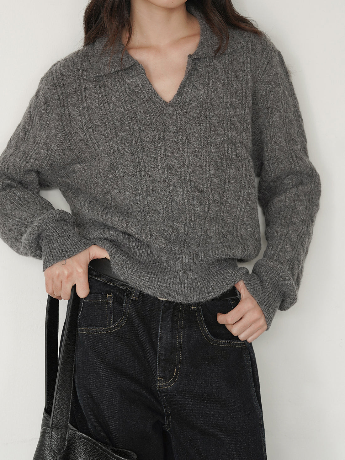 A knit with an Aran weave that gives off a mature, natural vibe.