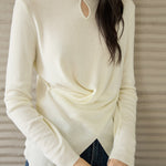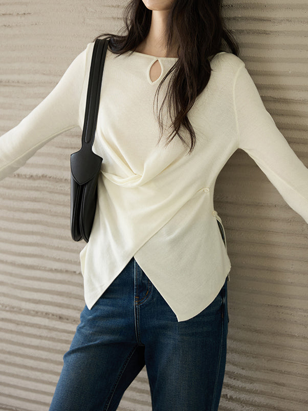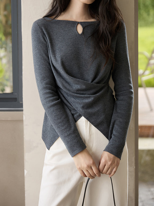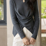 This knit has a simple yet sophisticated look with a three-dimensional front cross.