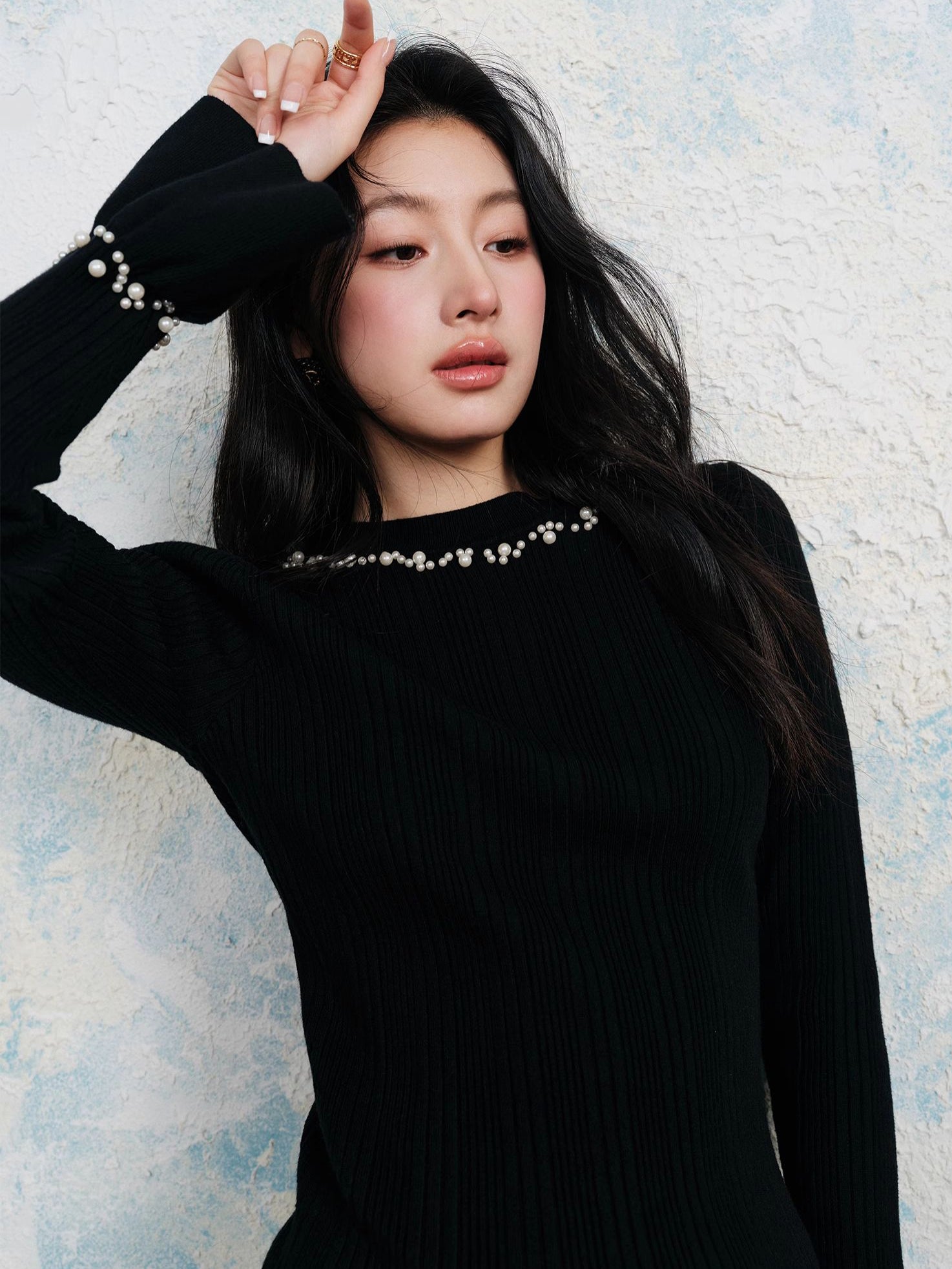 Pearl Bead Candy Sleeve Rib Knit (3 Colors)