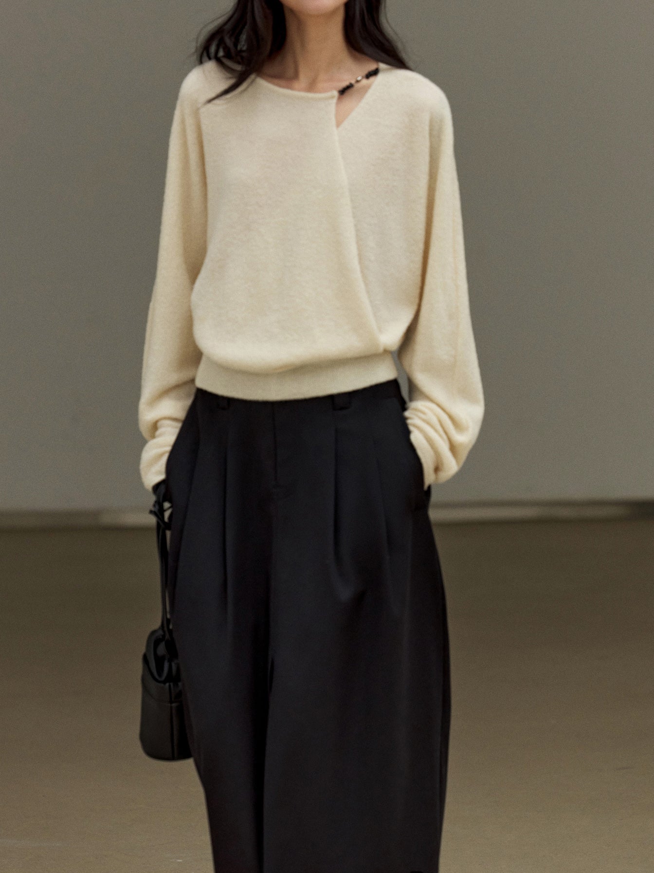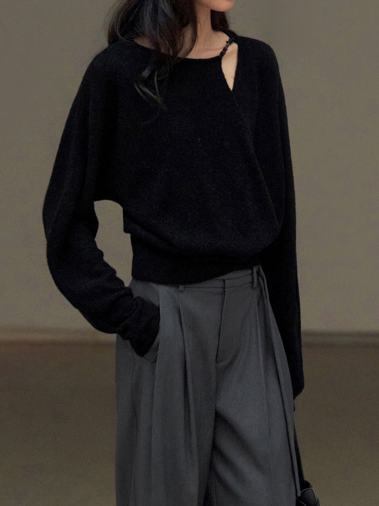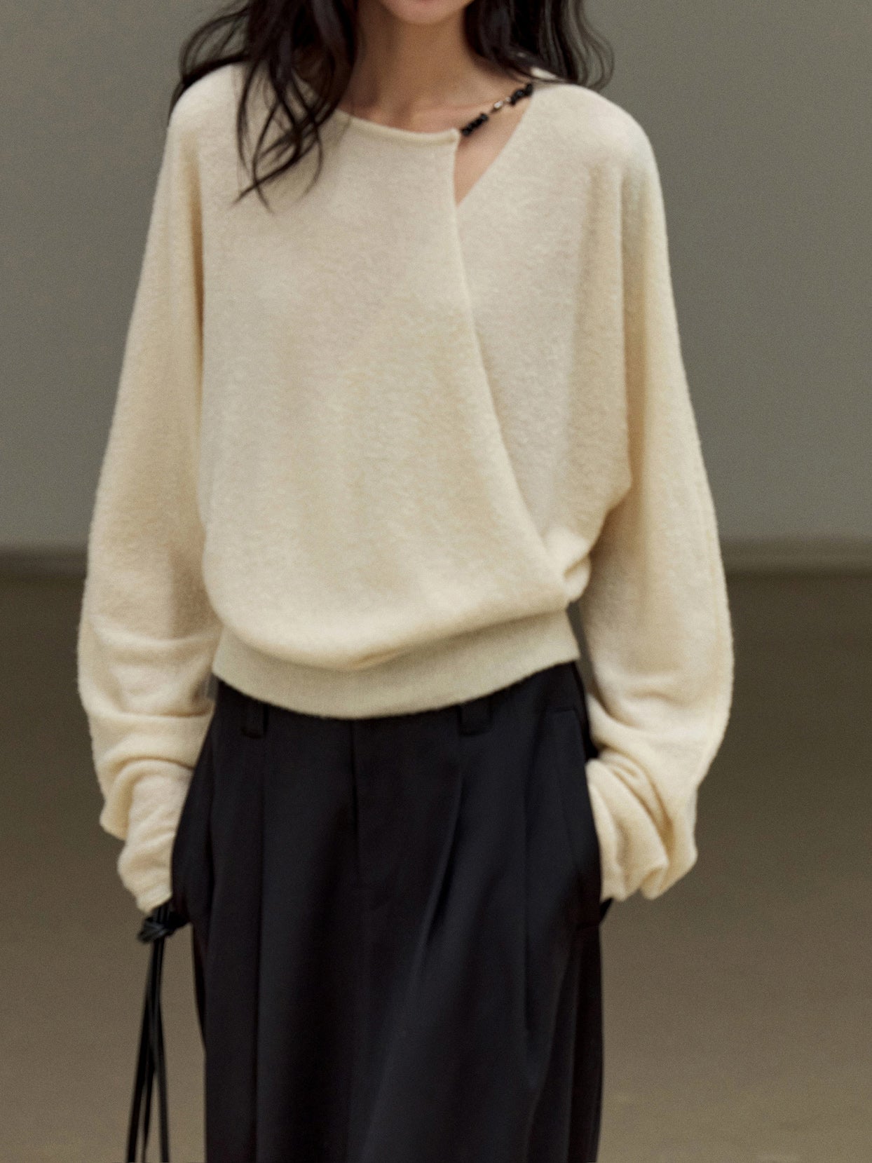 [ Asymmetrical strap front cross knit that accentuates femininity ]