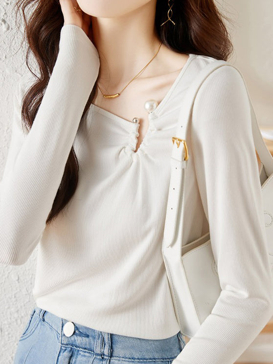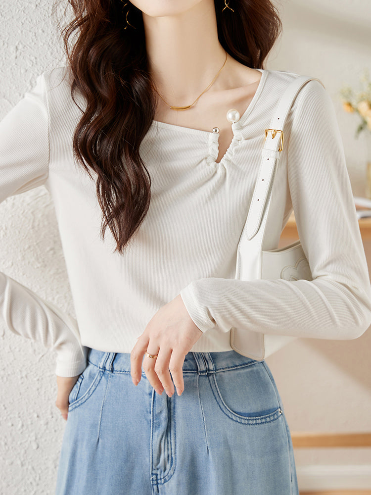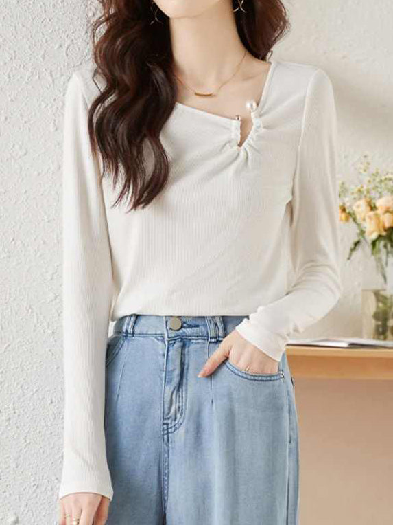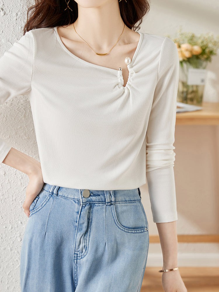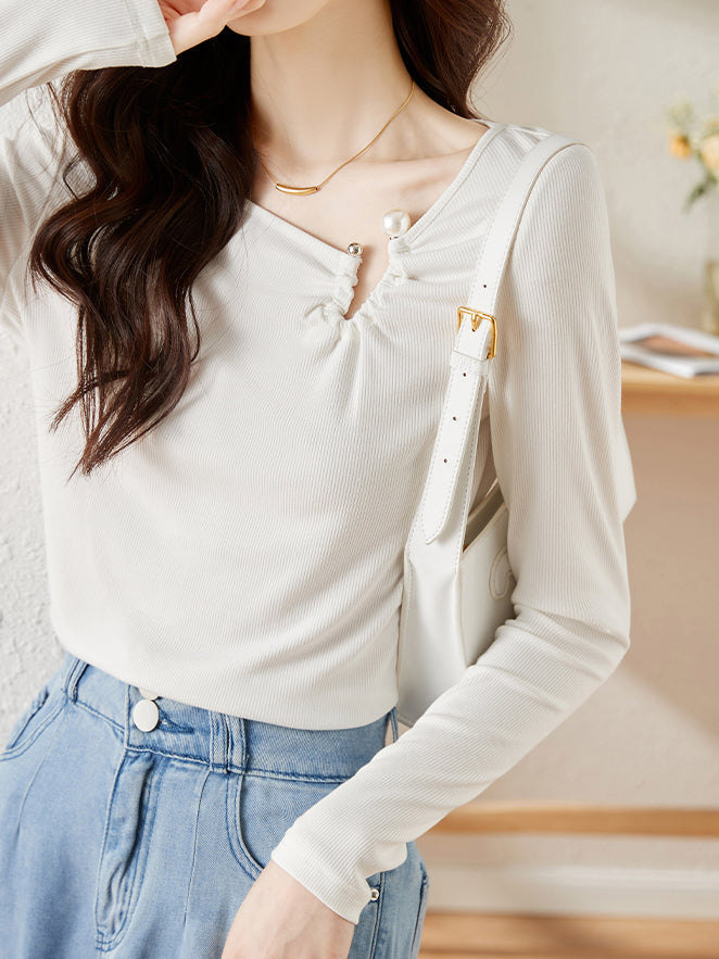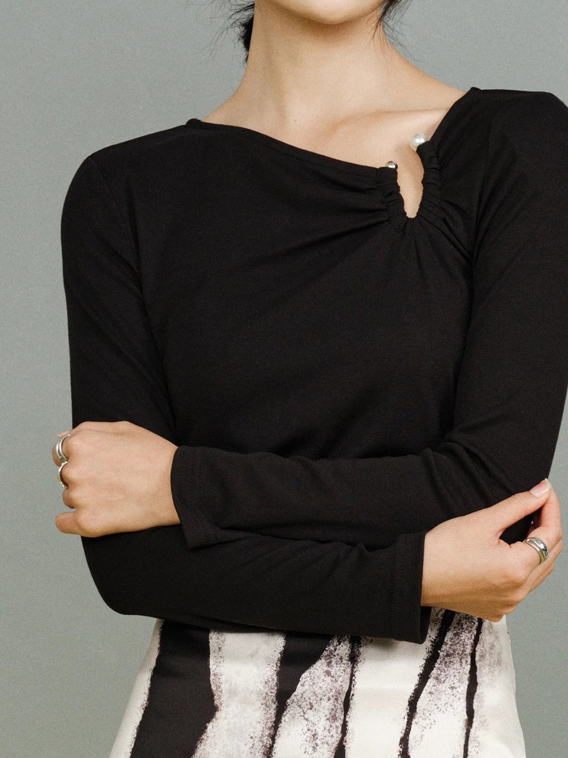 [ Side ring cut-and-sew top that creates a feminine silhouette ]