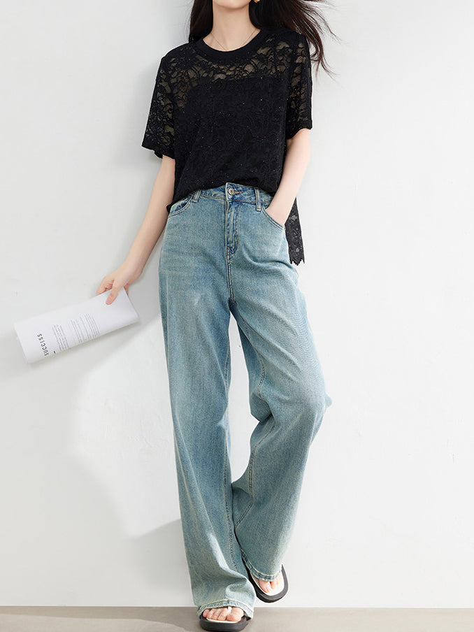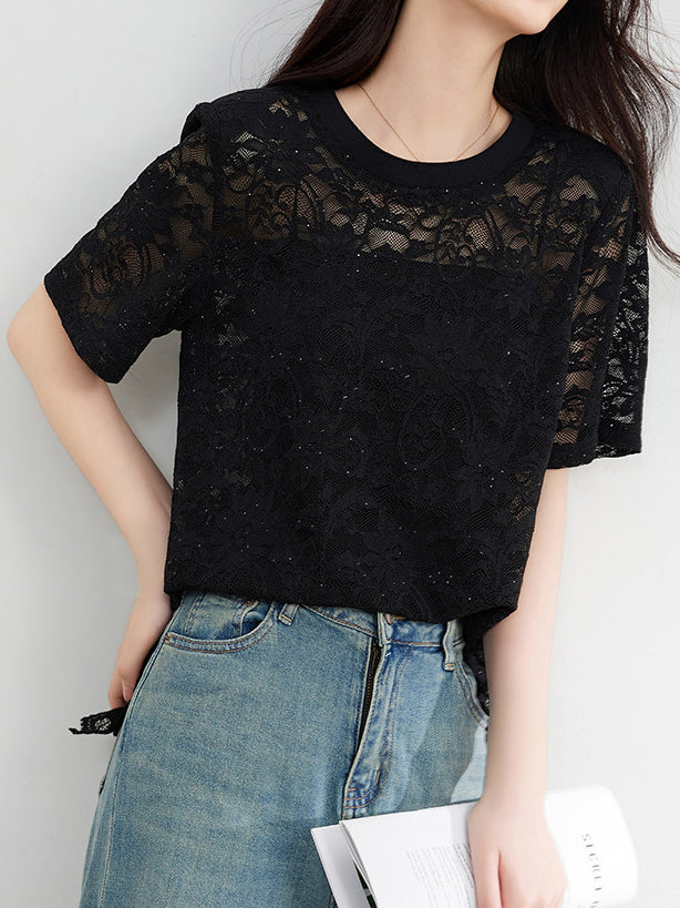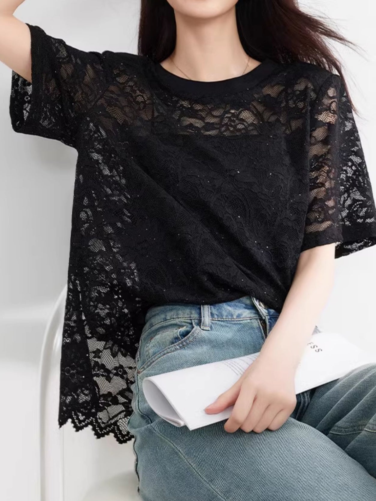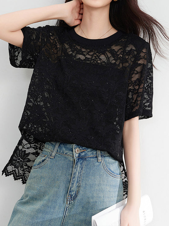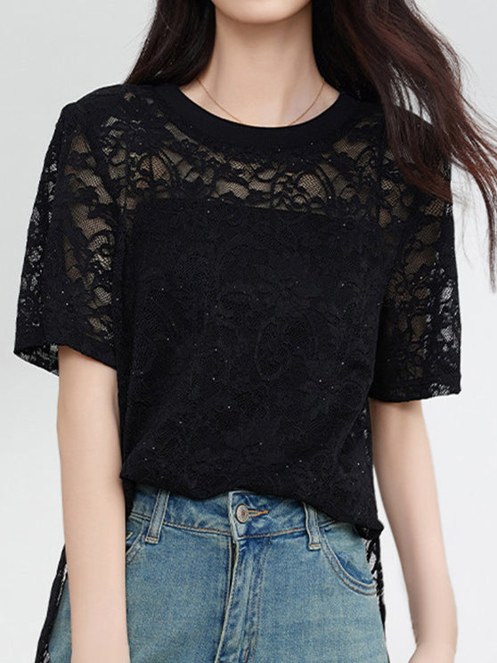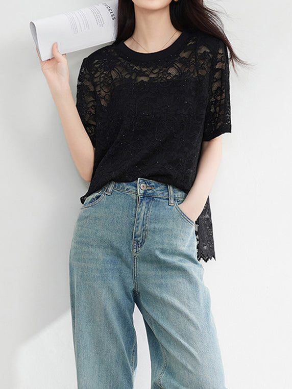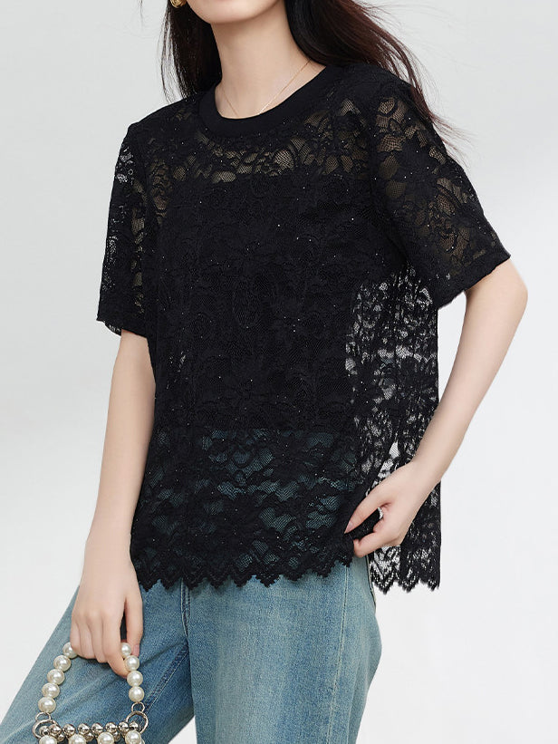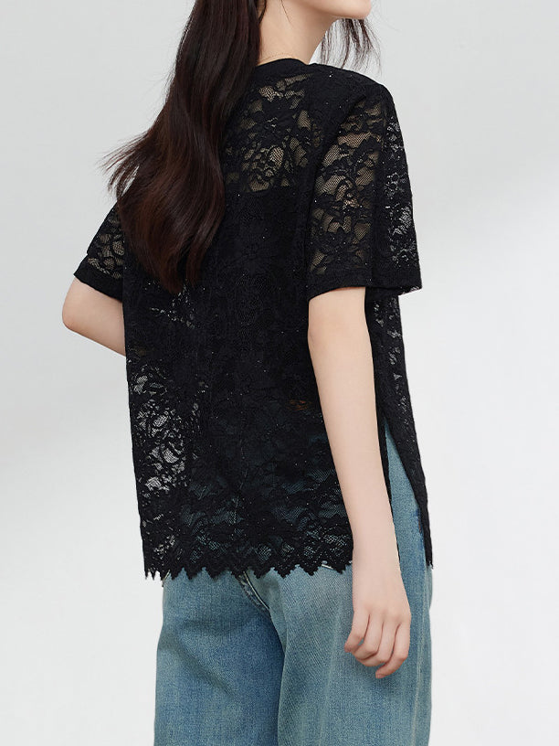 [ Sheer scallop lace T-shirt with an elegant and sophisticated feel ]
