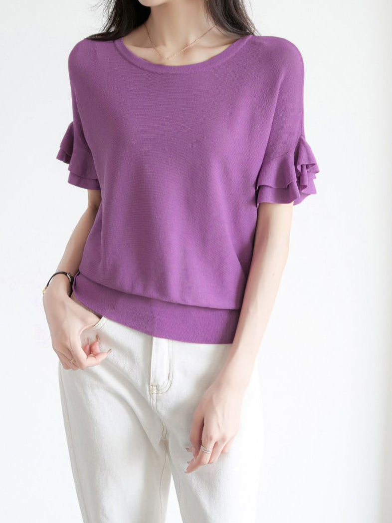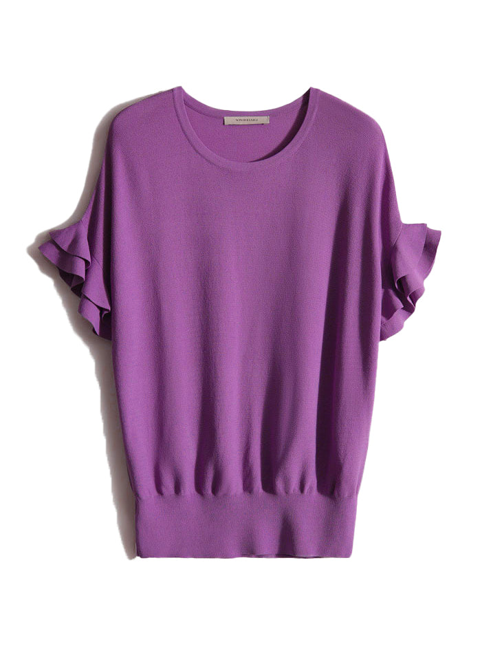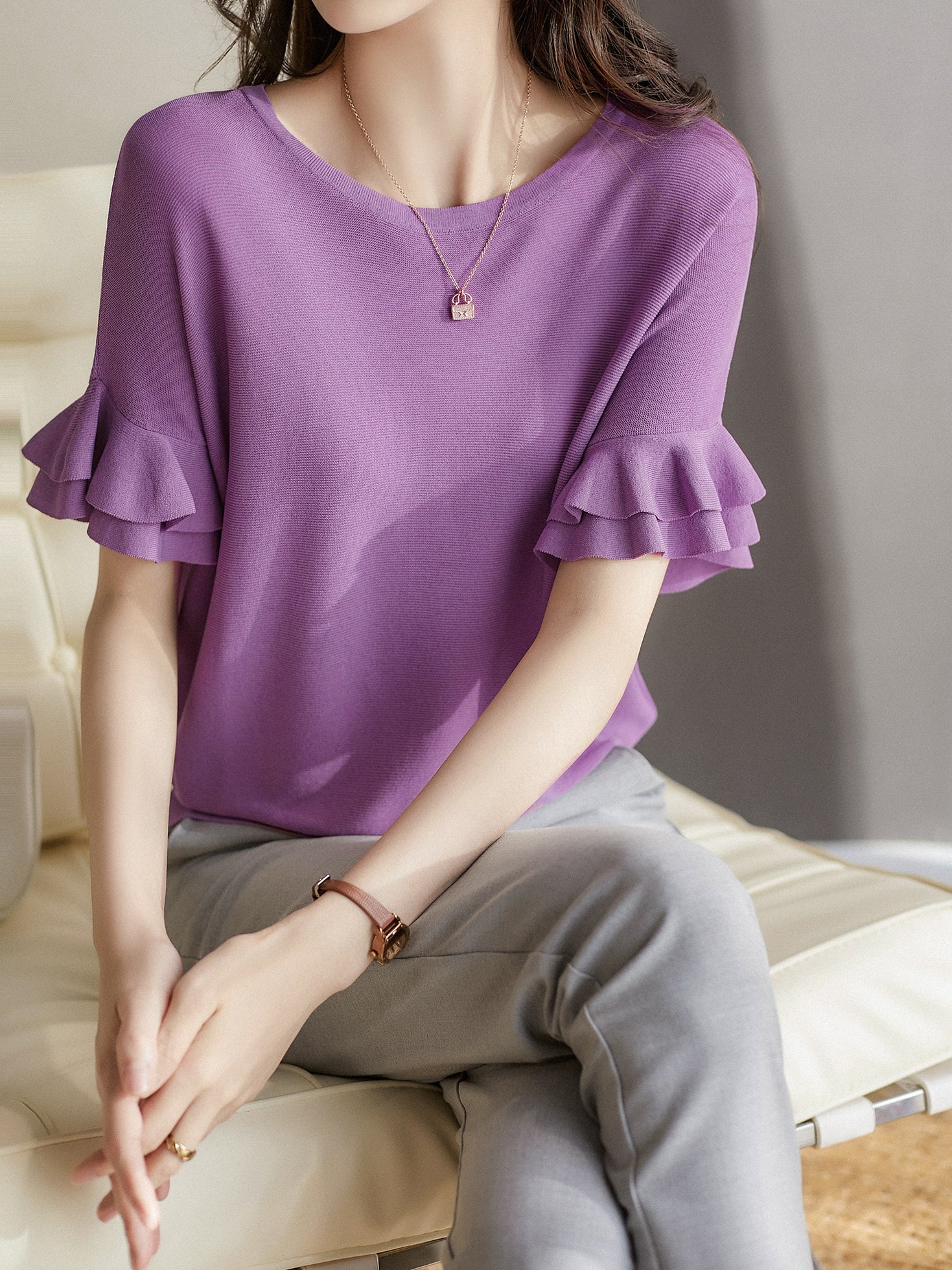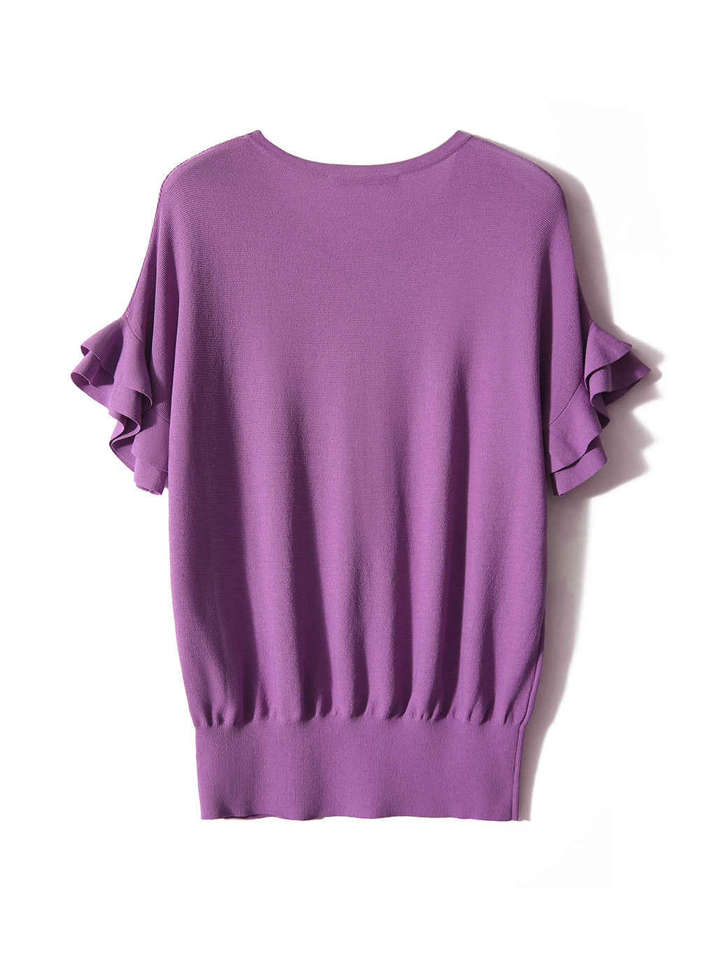 This top features fluttering double flared sleeves that give it an elegant and feminine impression.