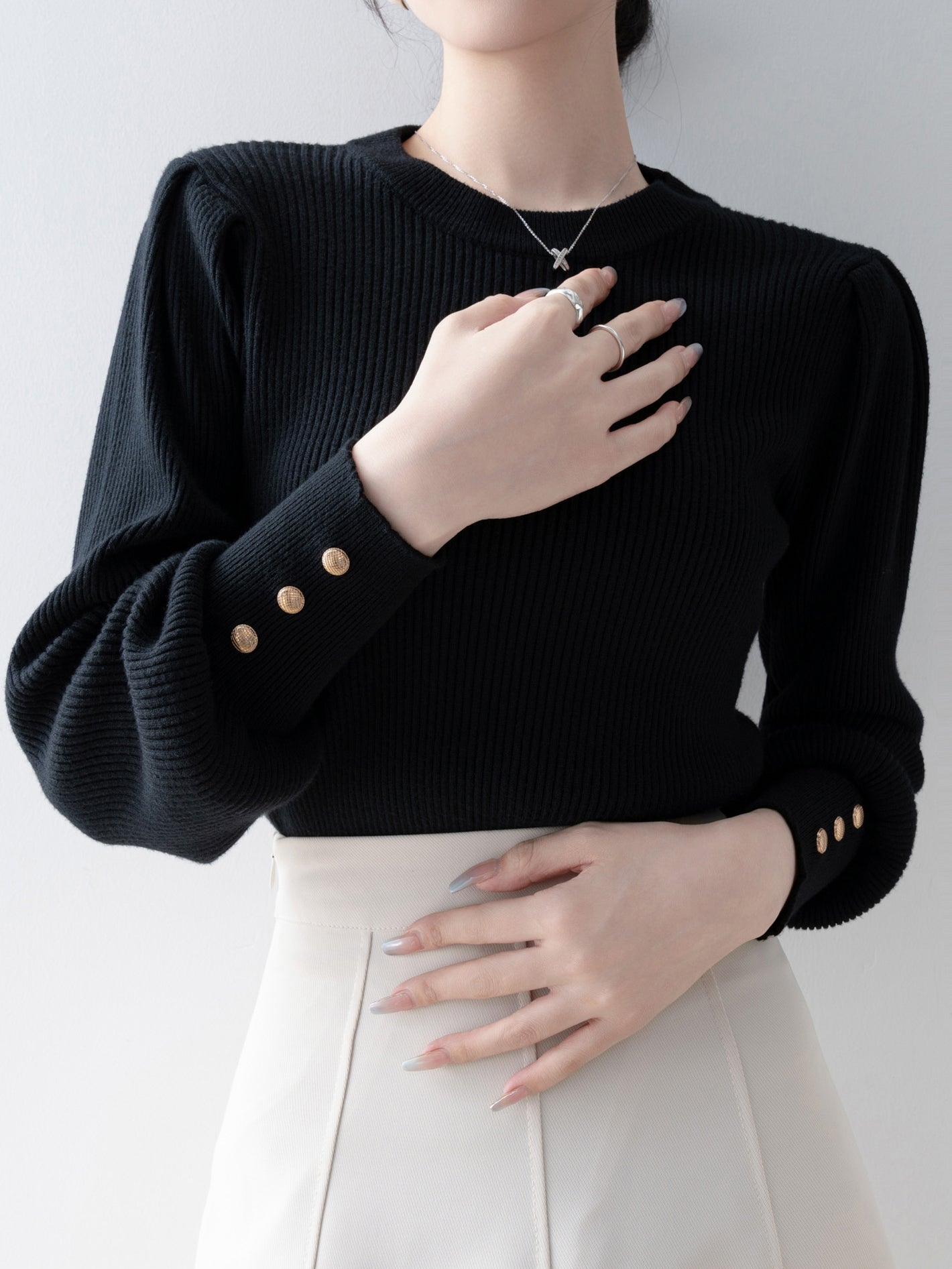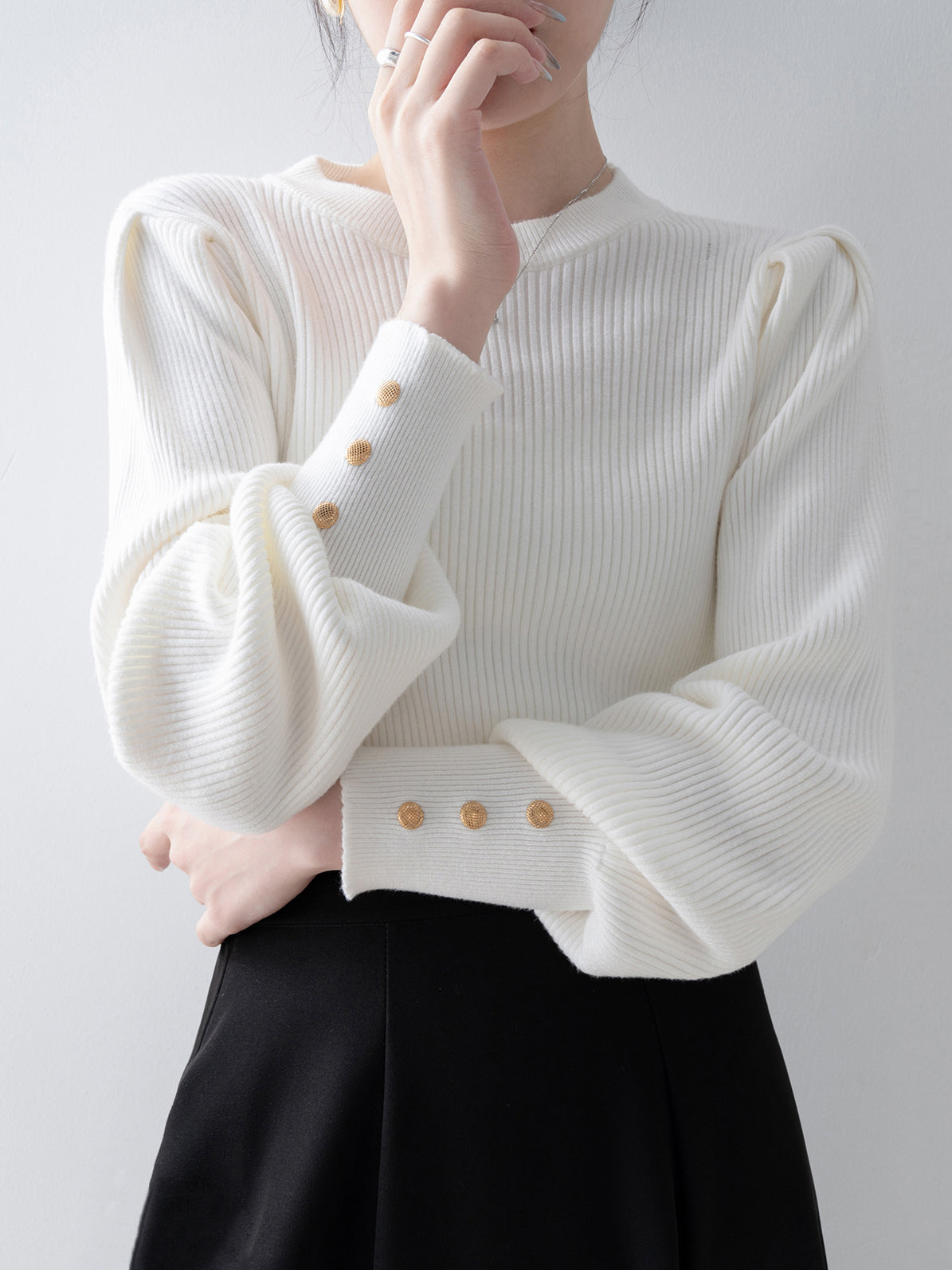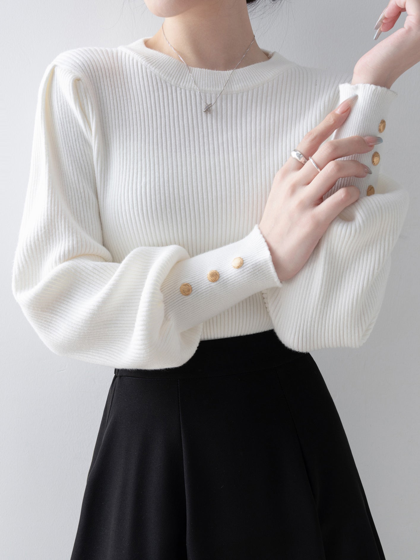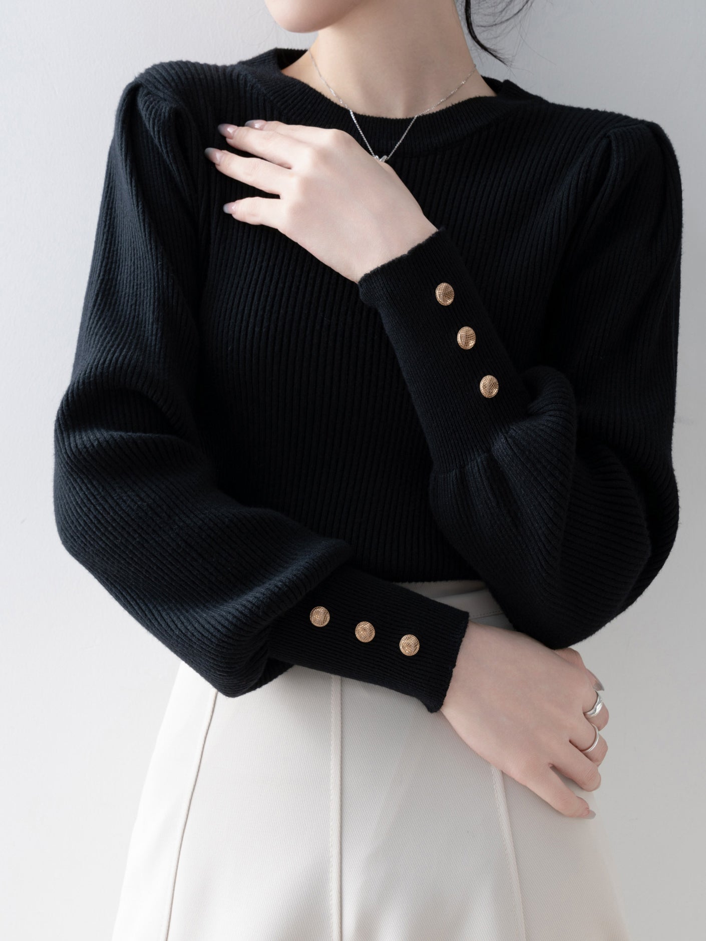 [ Gold buttons on the cuffs to beautifully decorate your hands ]
