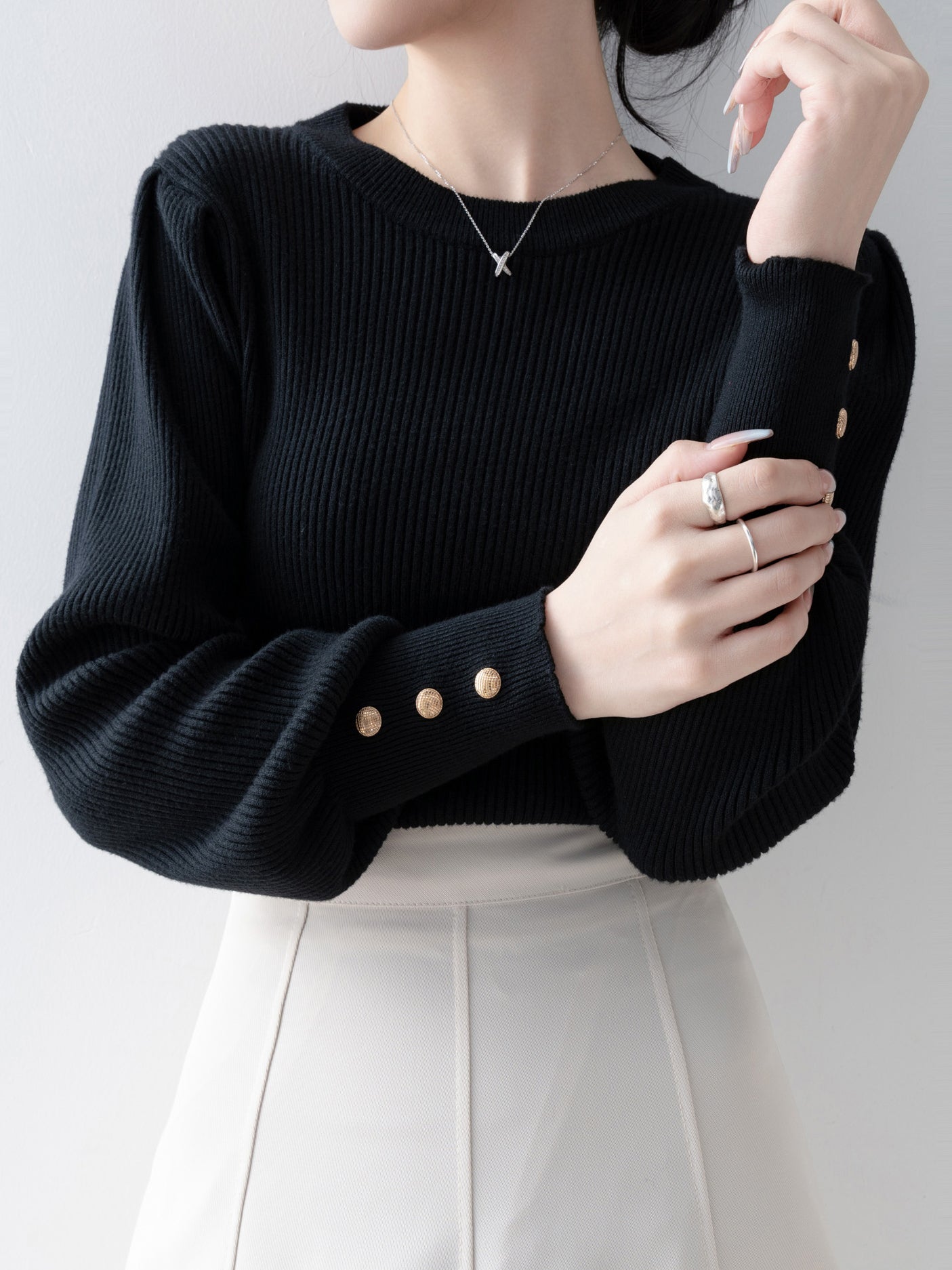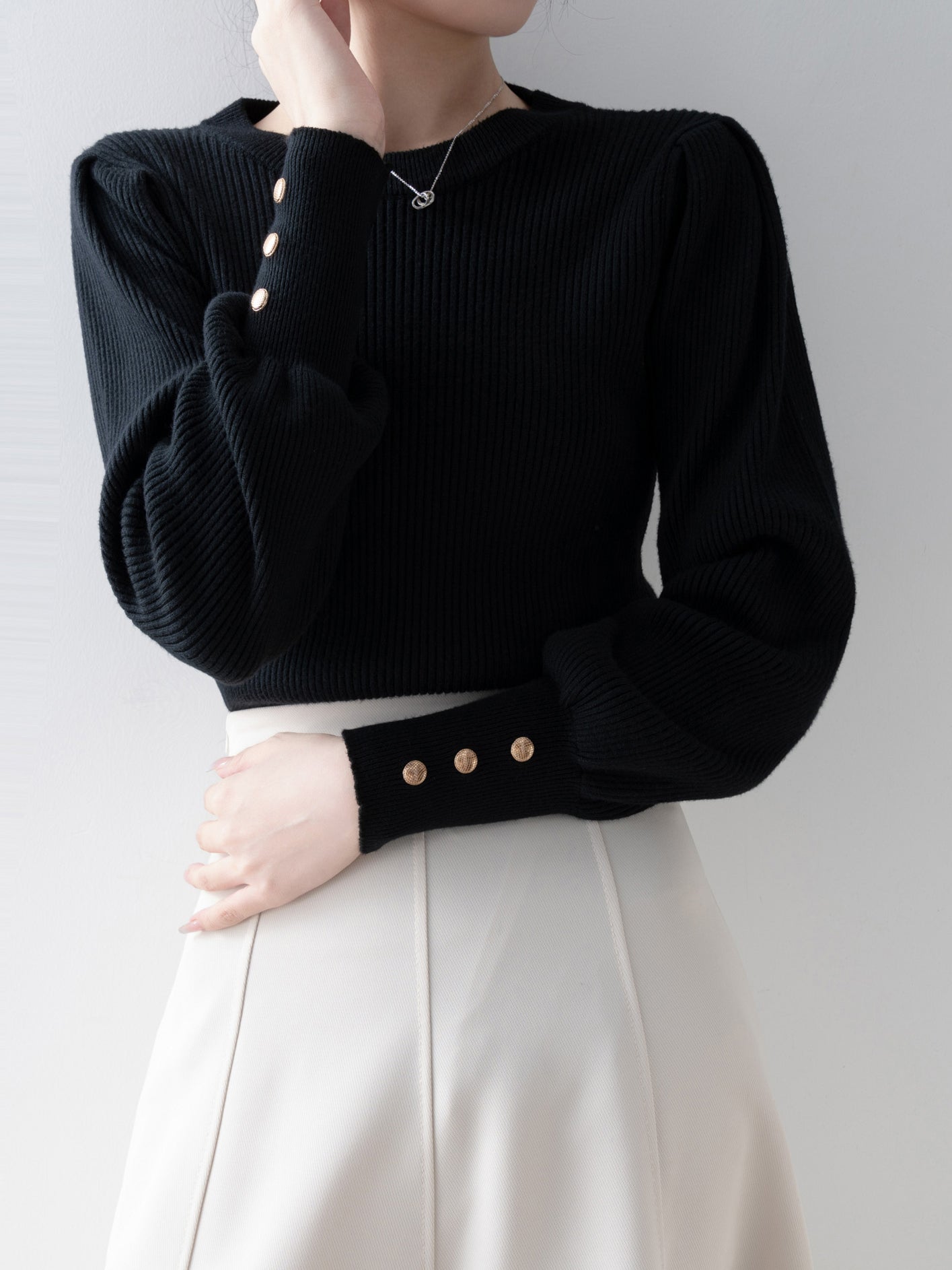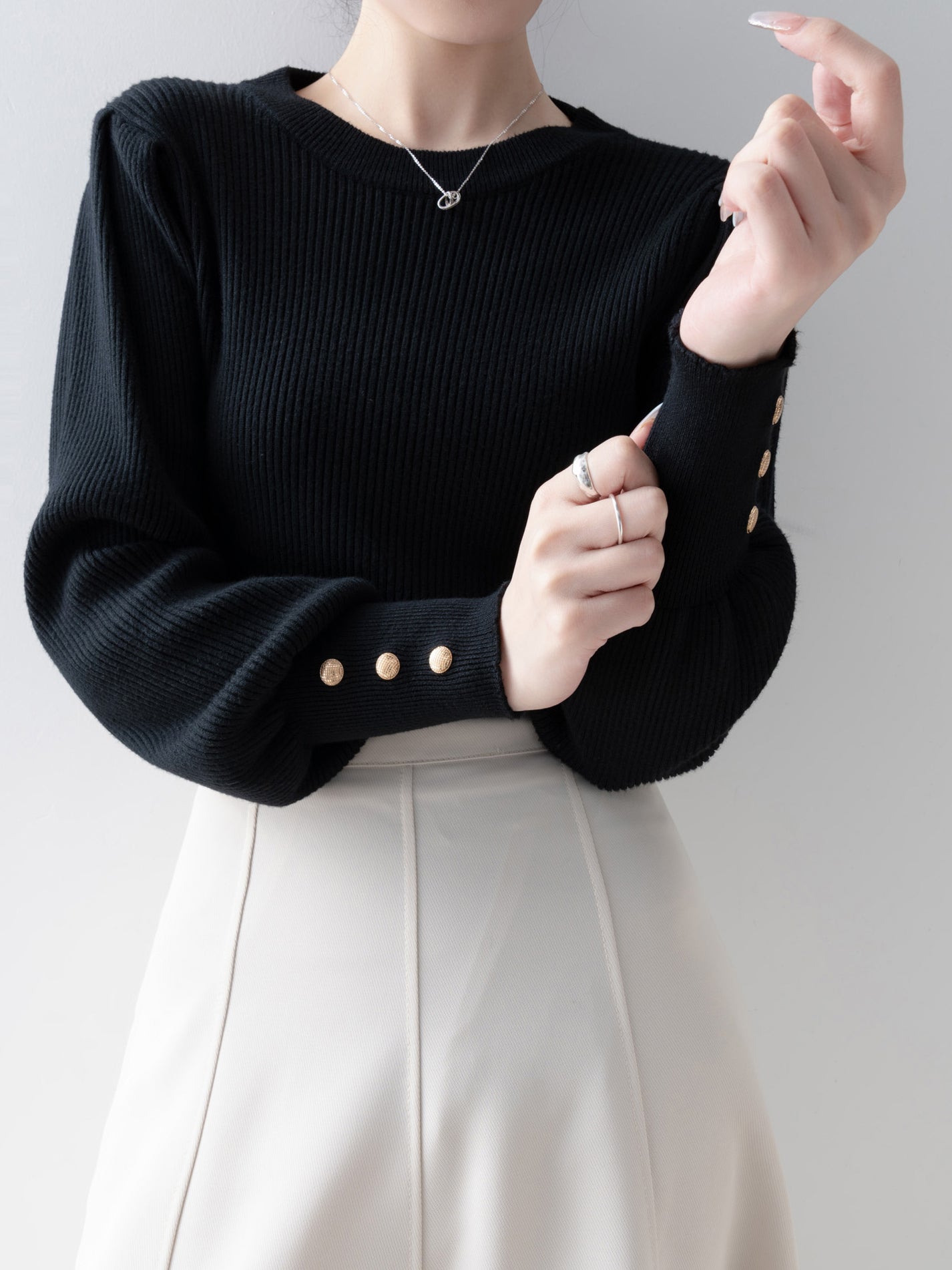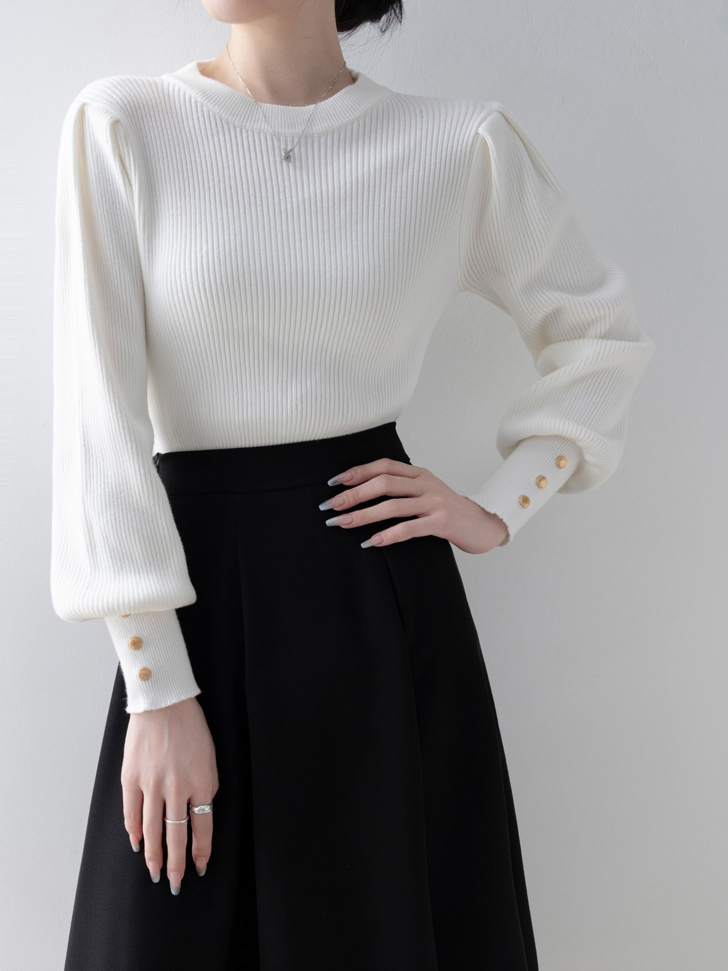 [ Gold buttons on the cuffs to beautifully decorate your hands ]