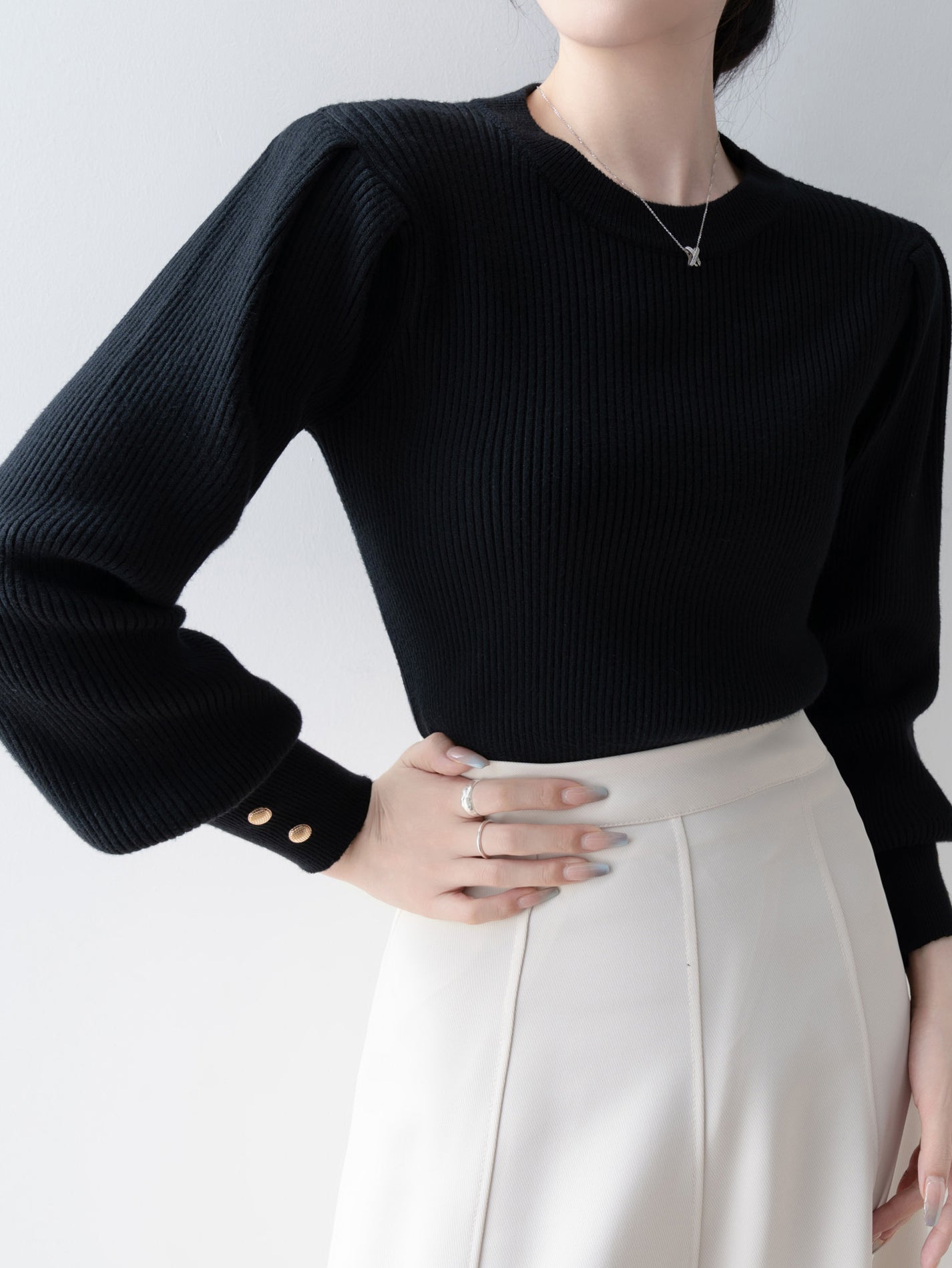 Volume sleeve ribbed knit top in 3 colors