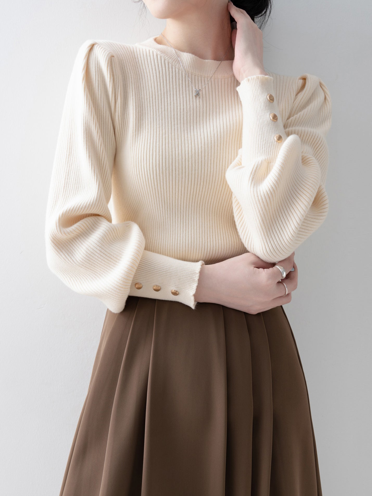 ☆ A sweet design with voluminous sleeves and buttons.
