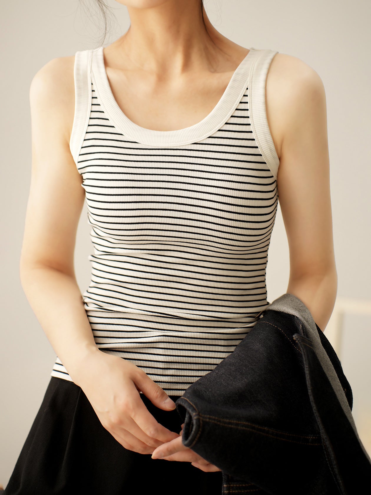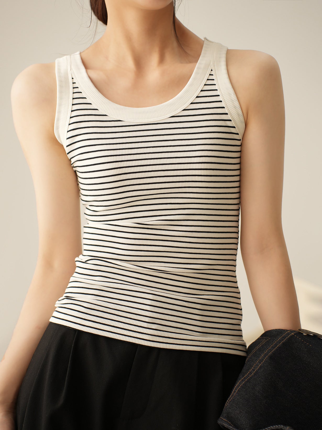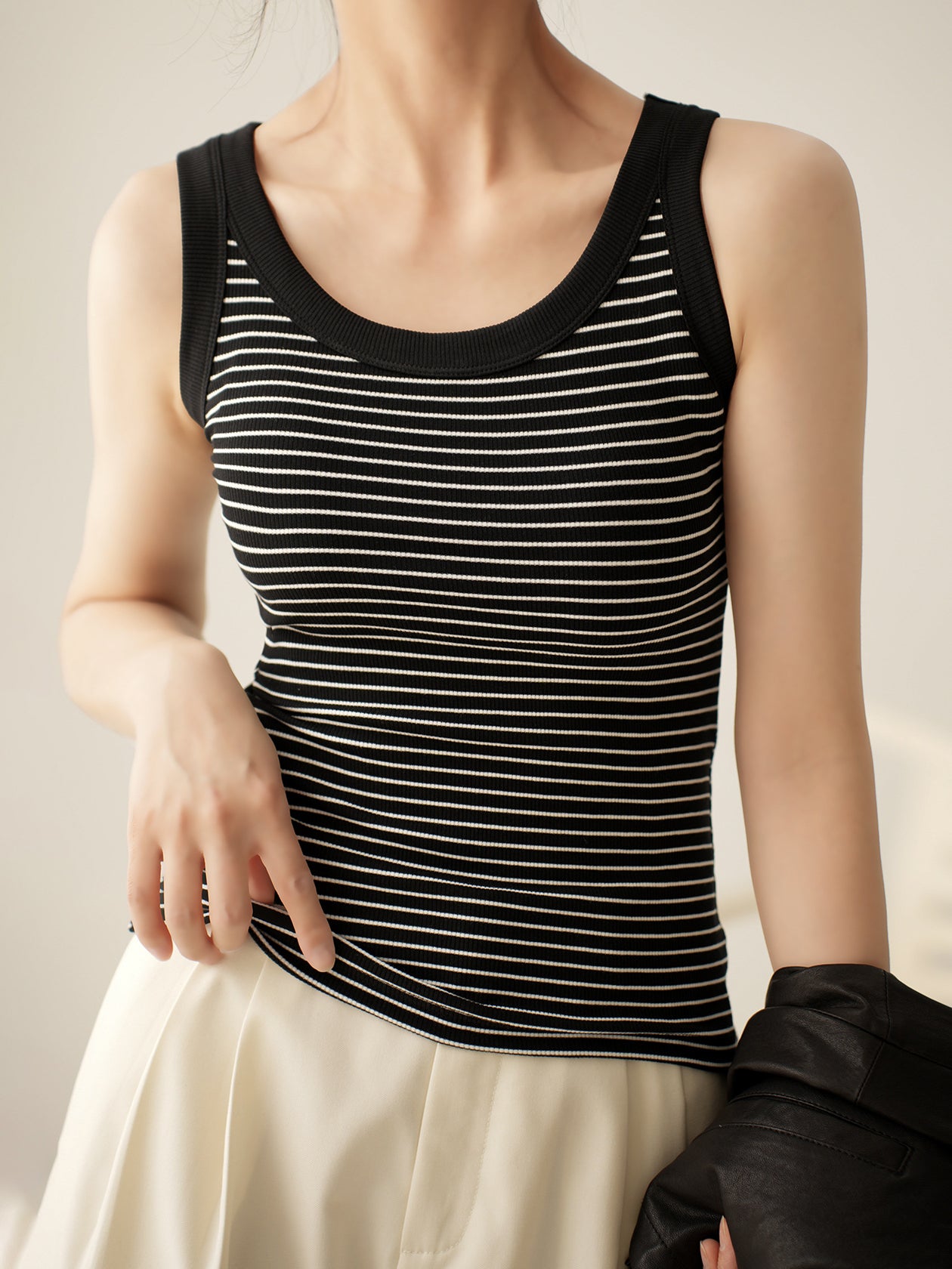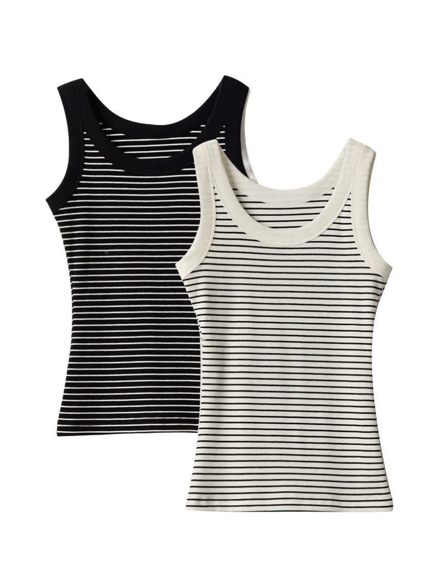 Border rib knit tank top in 2 colors