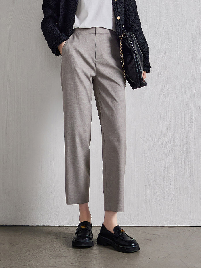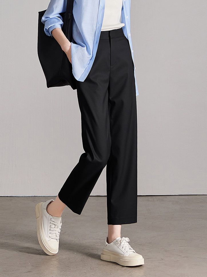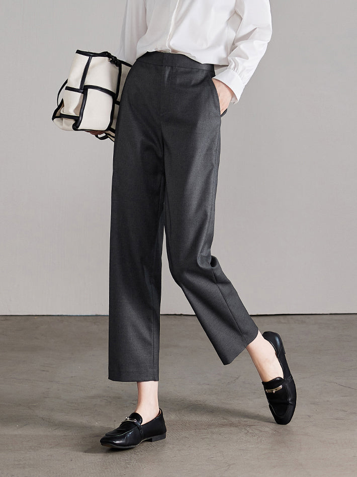Straight pants that are comfortable to wear and don't show off your figure too much.