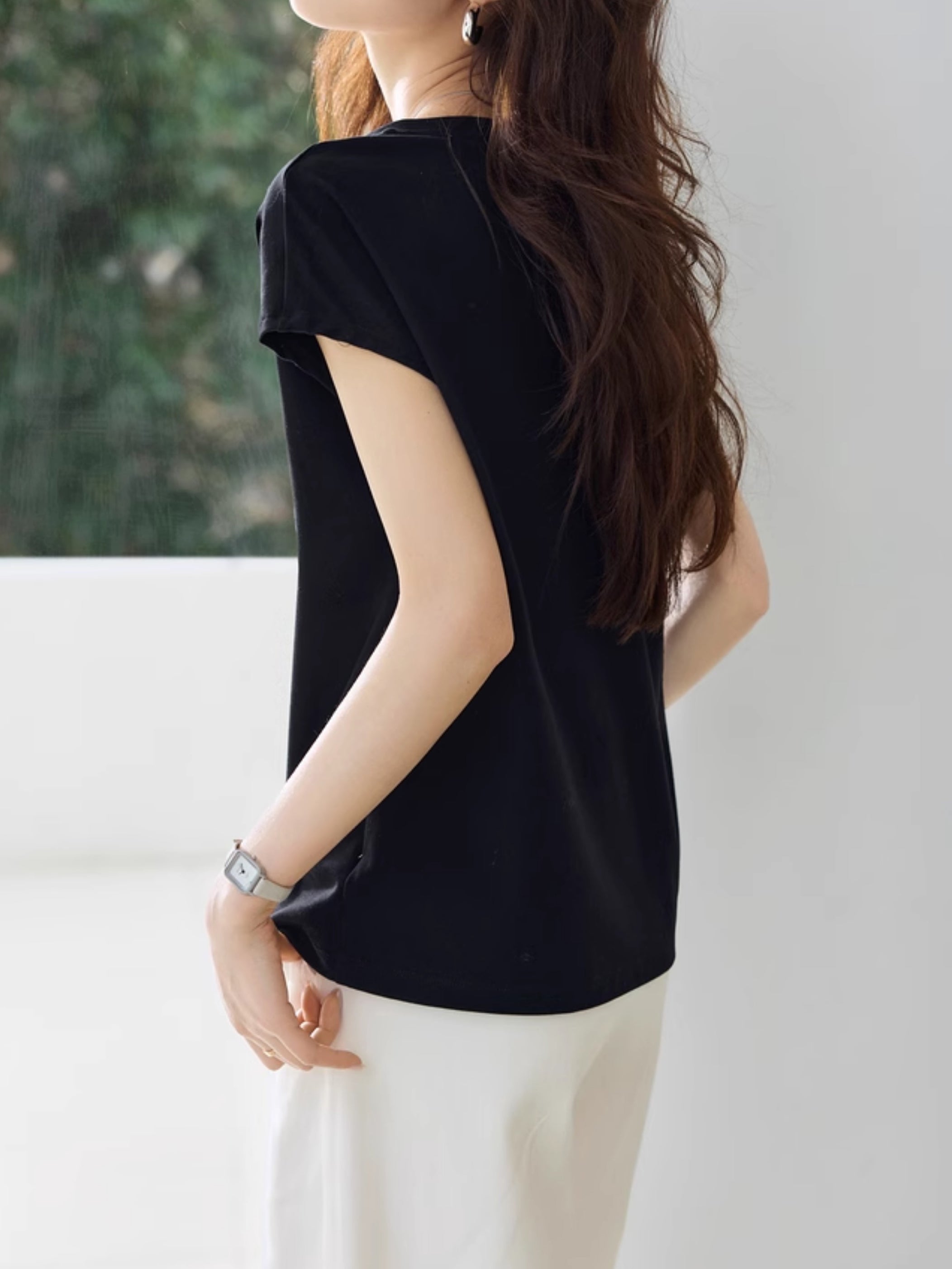 A half-sleeve top that can be worn alone for a layered look