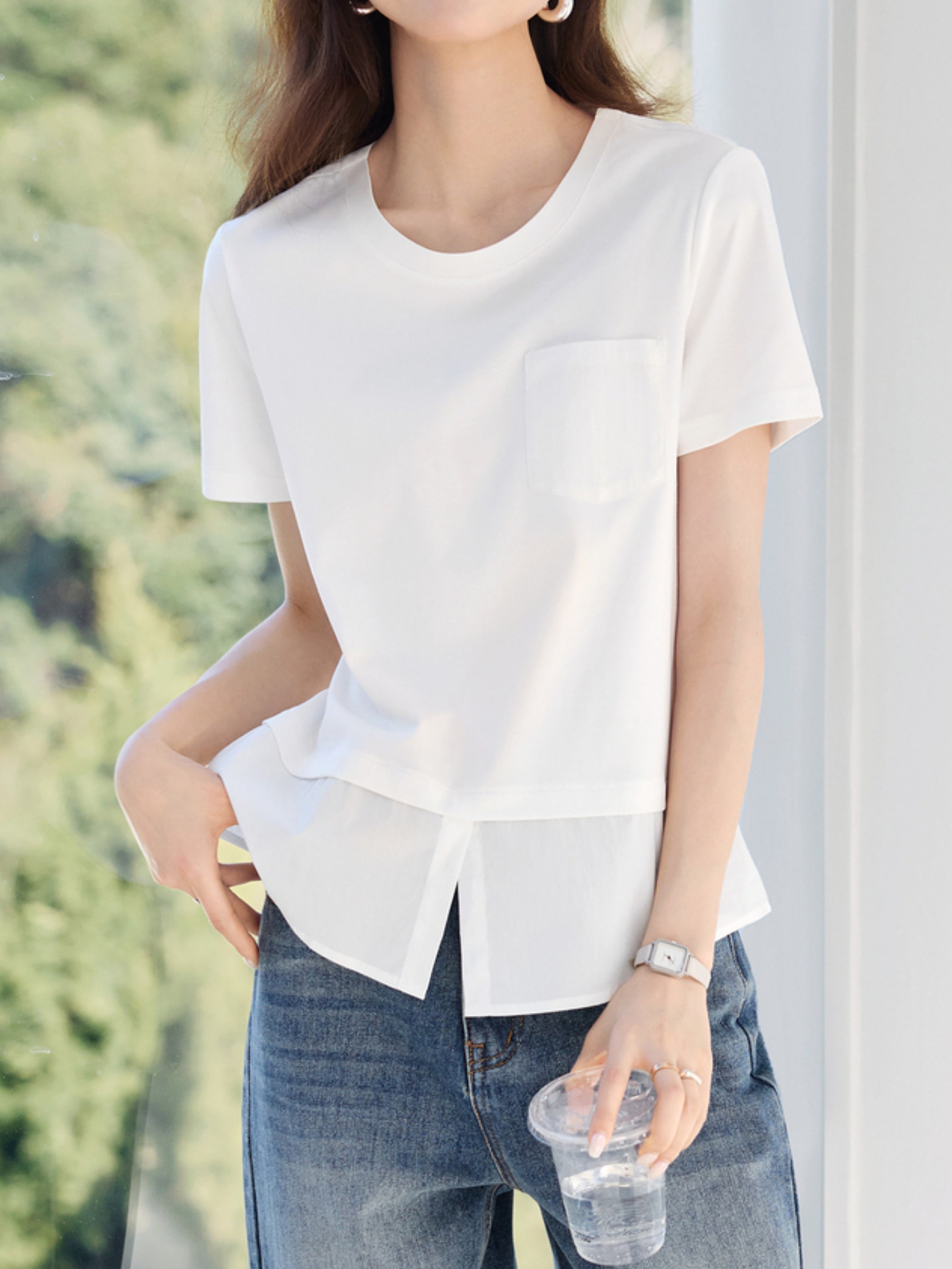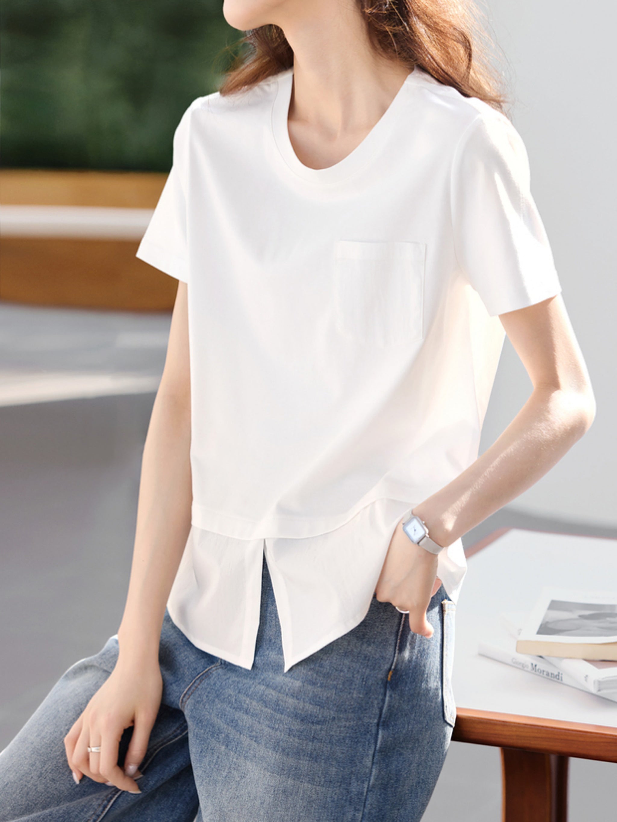 [ A subtle slit adds a sophisticated touch. A simple yet striking T-shirt ]
