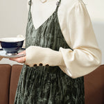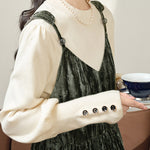 The balloon sleeves and button decorations give this piece a cute, grown-up look that is extremely versatile.