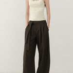 ☆A bold belt is placed on the side waist, tightening the waistline and creating a neat and tidy pants style.