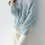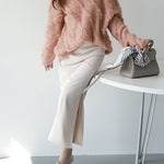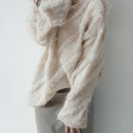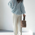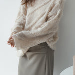 The mohair blend knit has an airy and soft texture, creating a high-quality atmosphere.