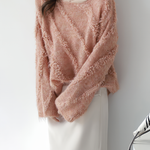 Diagonal fringe design knitwear in 3 colors