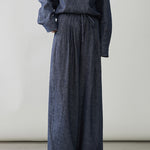 Easy denim wide pants with drawstring (can be coordinated)