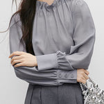 A ruffle neck blouse that can be worn daily, both on and off the job.