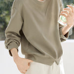 A sweatshirt with a front slit that creates a sophisticated, simple and fashionable look.