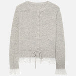 The lace peeking out from the hem gives this cardigan a gorgeous, trendy feel!