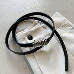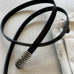 This is an elegant belt that combines metal hooks of different widths.