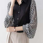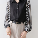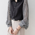 A long-sleeved shirt that combines elegance and style suitable for adult women .