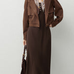 A suede jacket with a retro feel and a perfectly balanced short length.