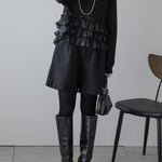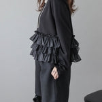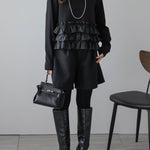 [The generous ruffle hem creates a sophisticated and feminine look.]