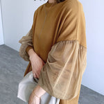 A sweatshirt pullover with eye-catching tulle accents on the sleeves.