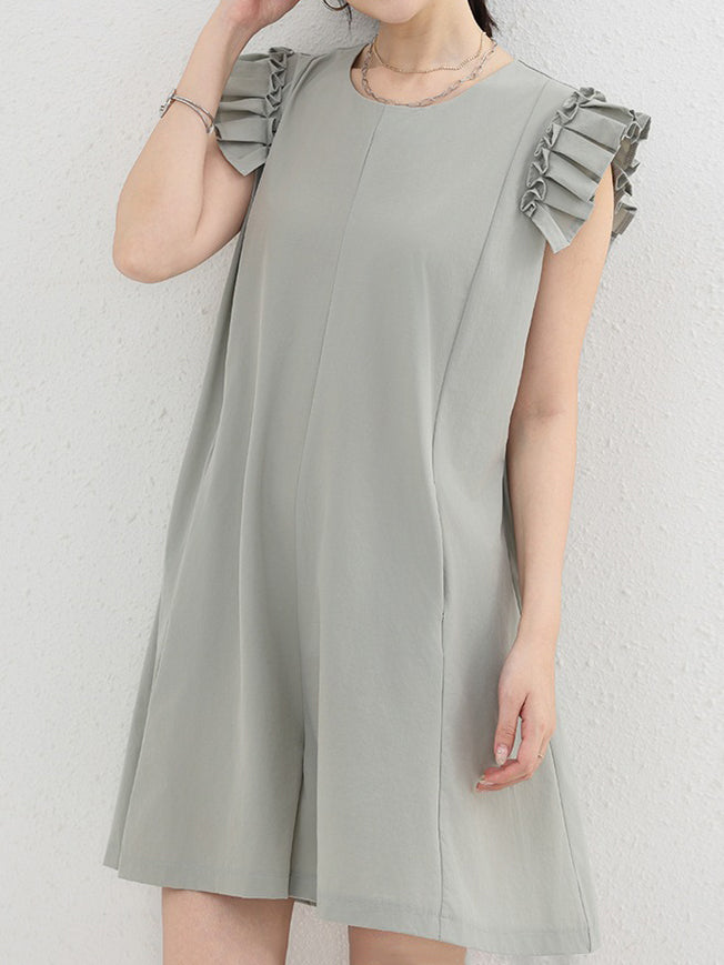 Wrinkled sleeveless blouse and wide pants set (2 colors)