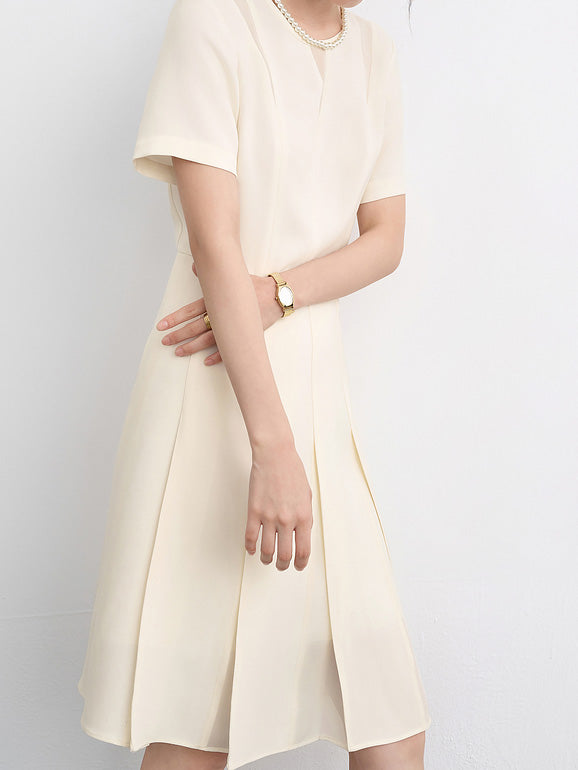Key neck gathered dress, 2 colors