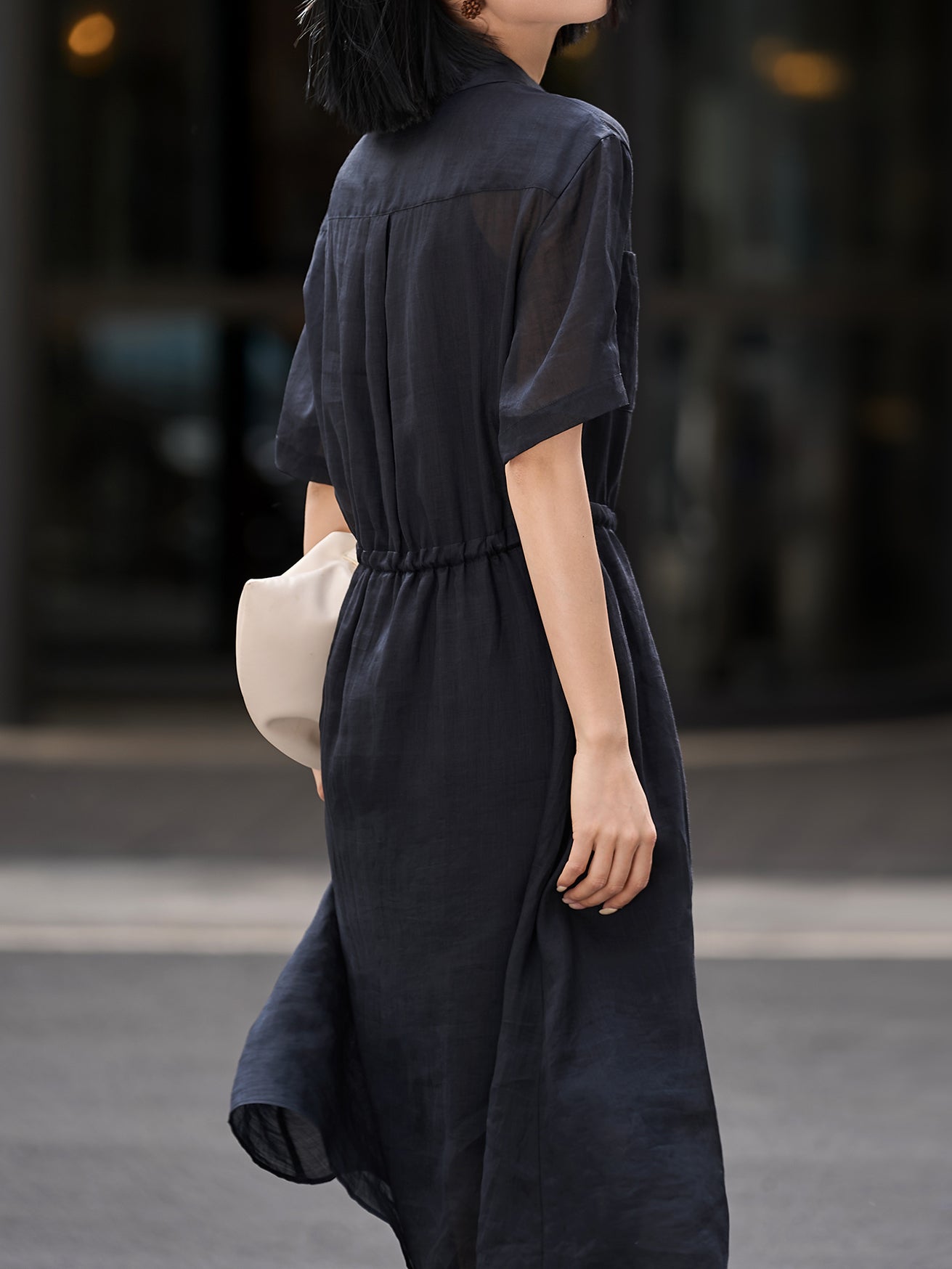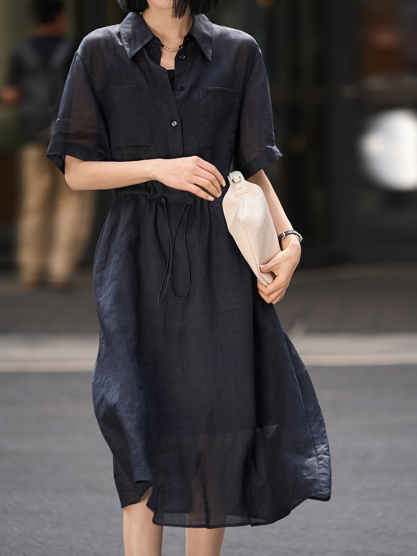 Waist drawstring shirt dress
