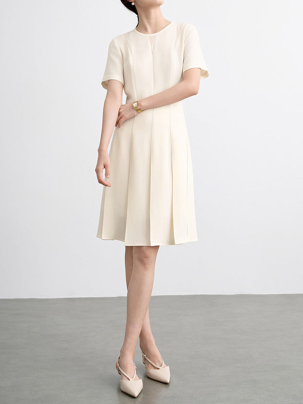 Pintuck Belted Dress