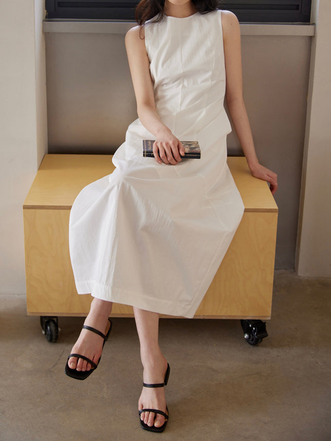 Sleeveless long balloon dress in 2 colors
