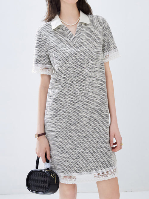 Cutwork lace docking tweed dress