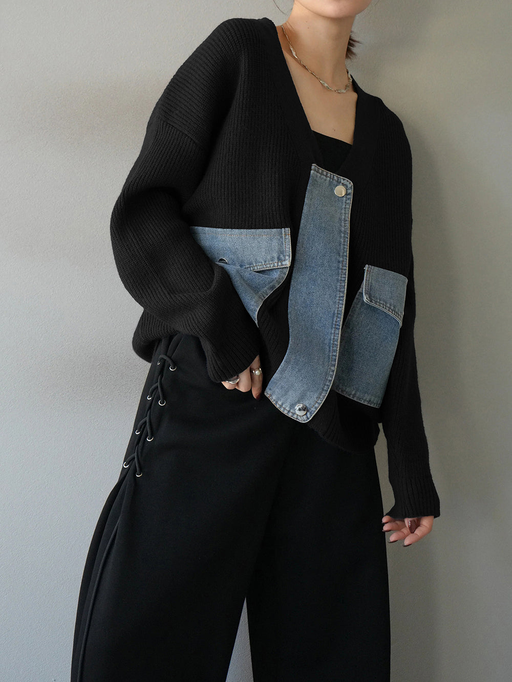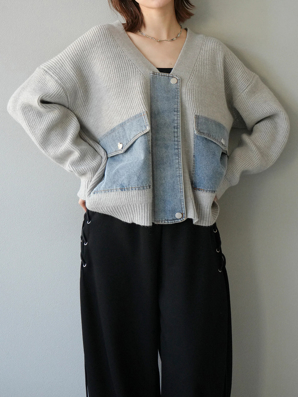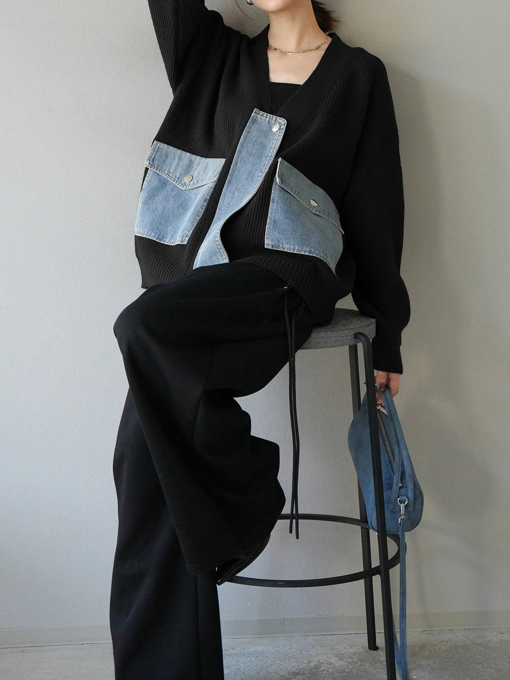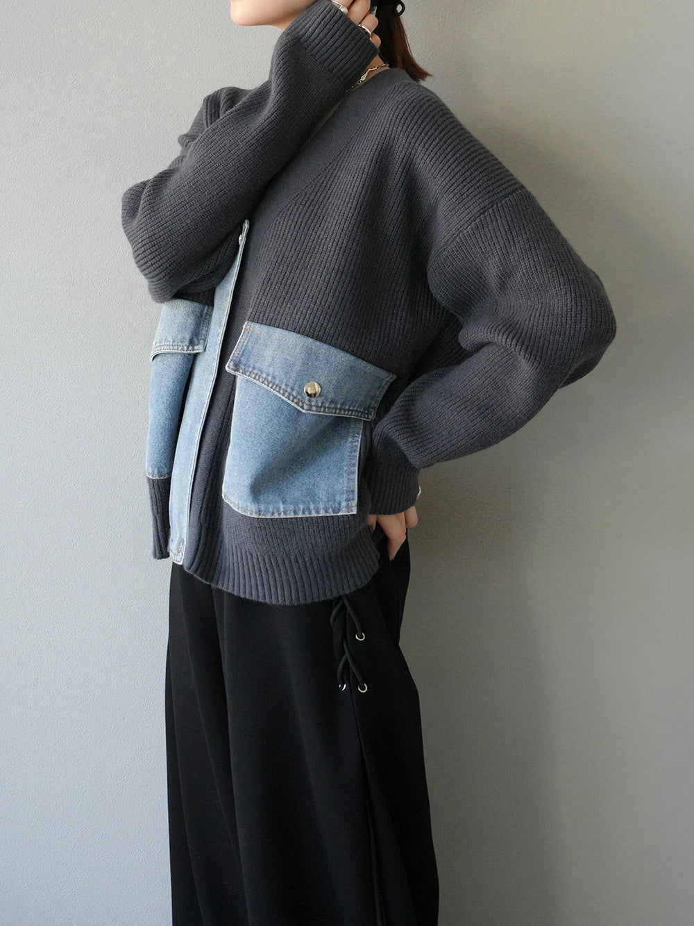 ☆By adding denim details to a simple ribbed knit, it has been created as a casual yet eye-catching piece.