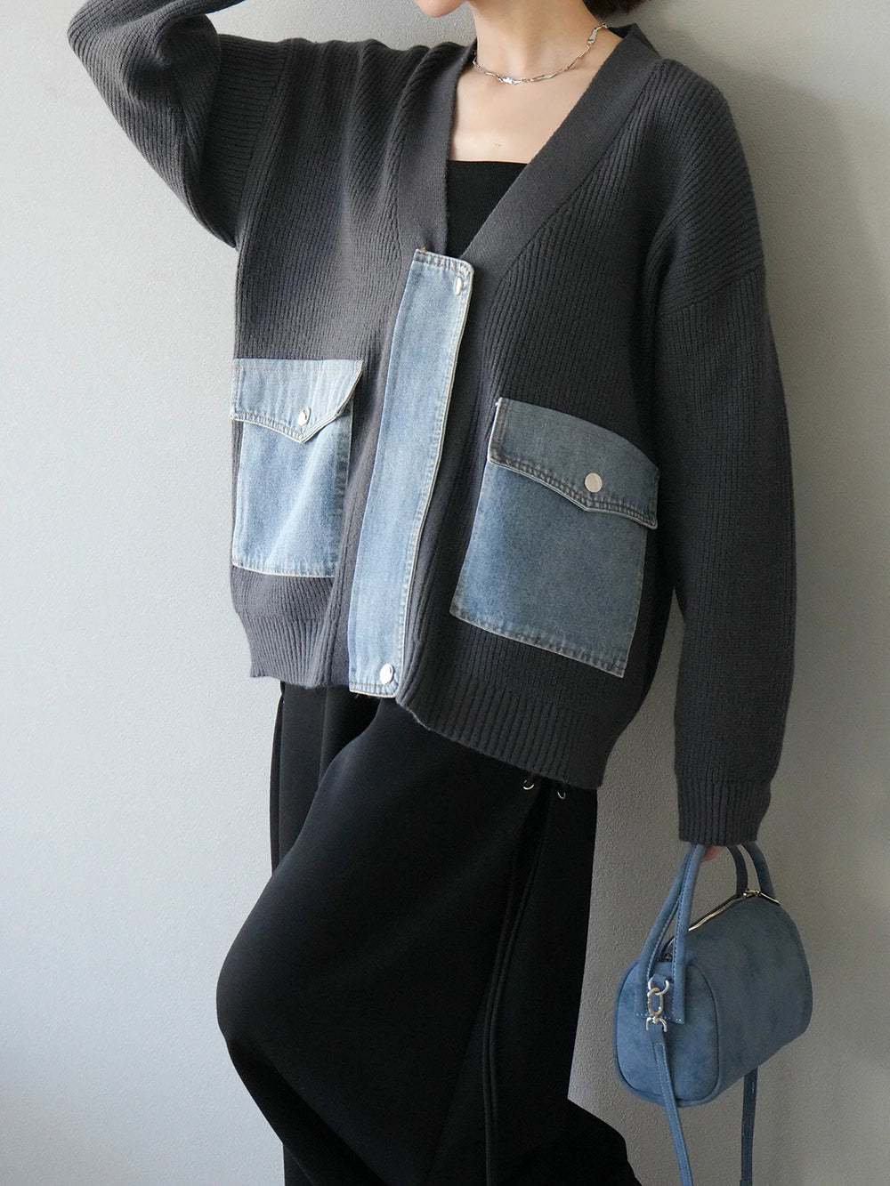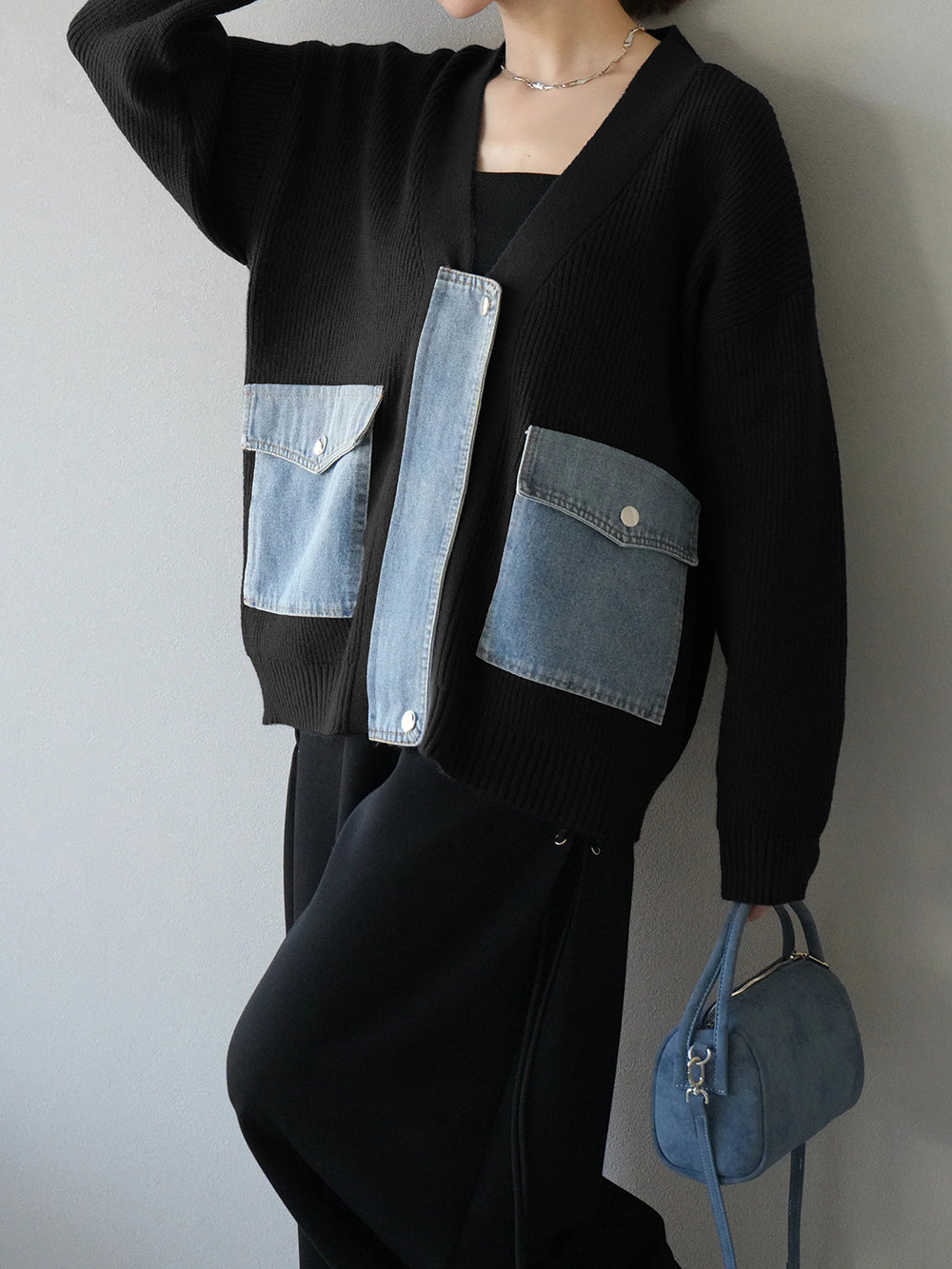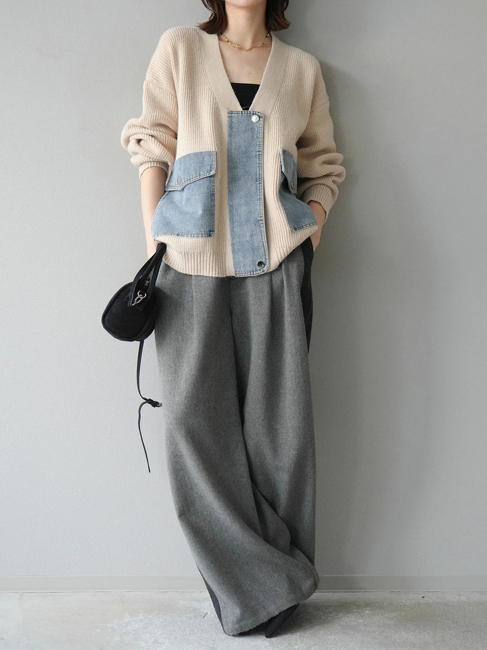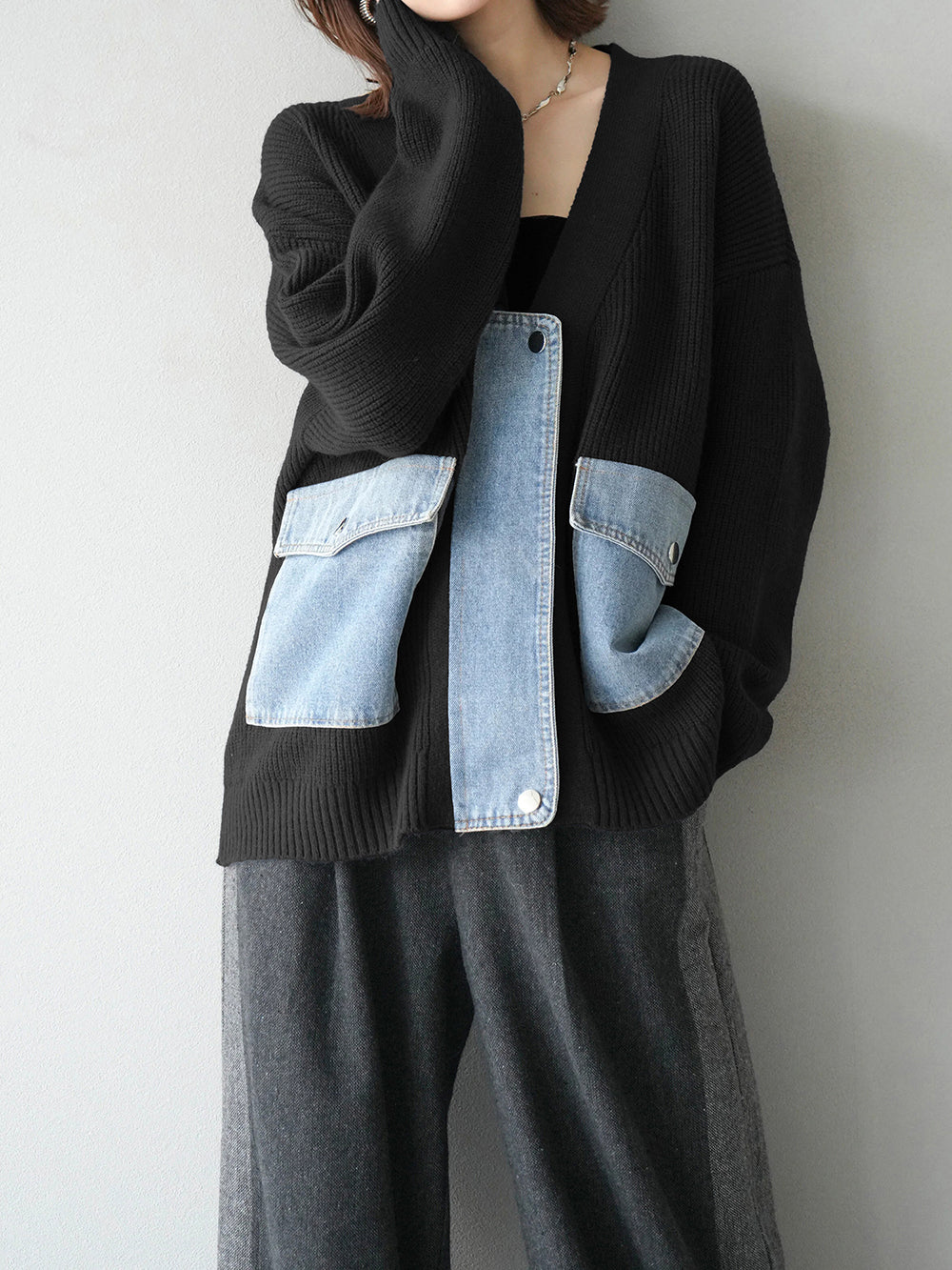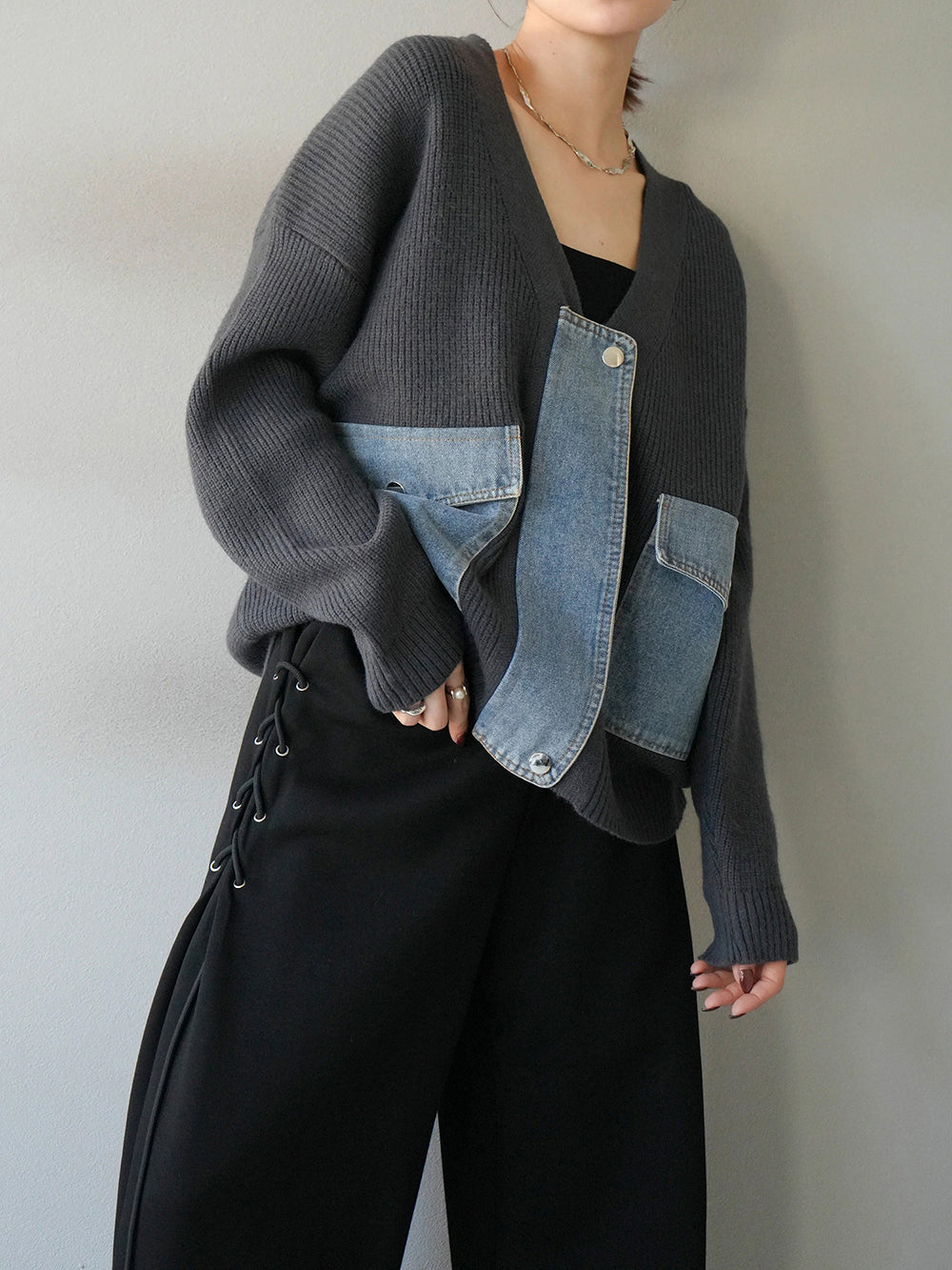 ☆By adding denim details to a simple ribbed knit, it has been created as a casual yet eye-catching piece.