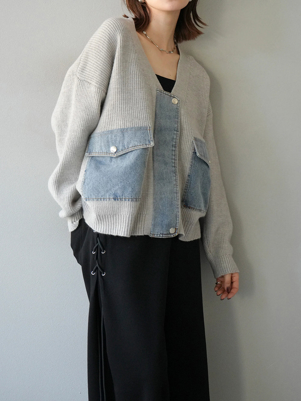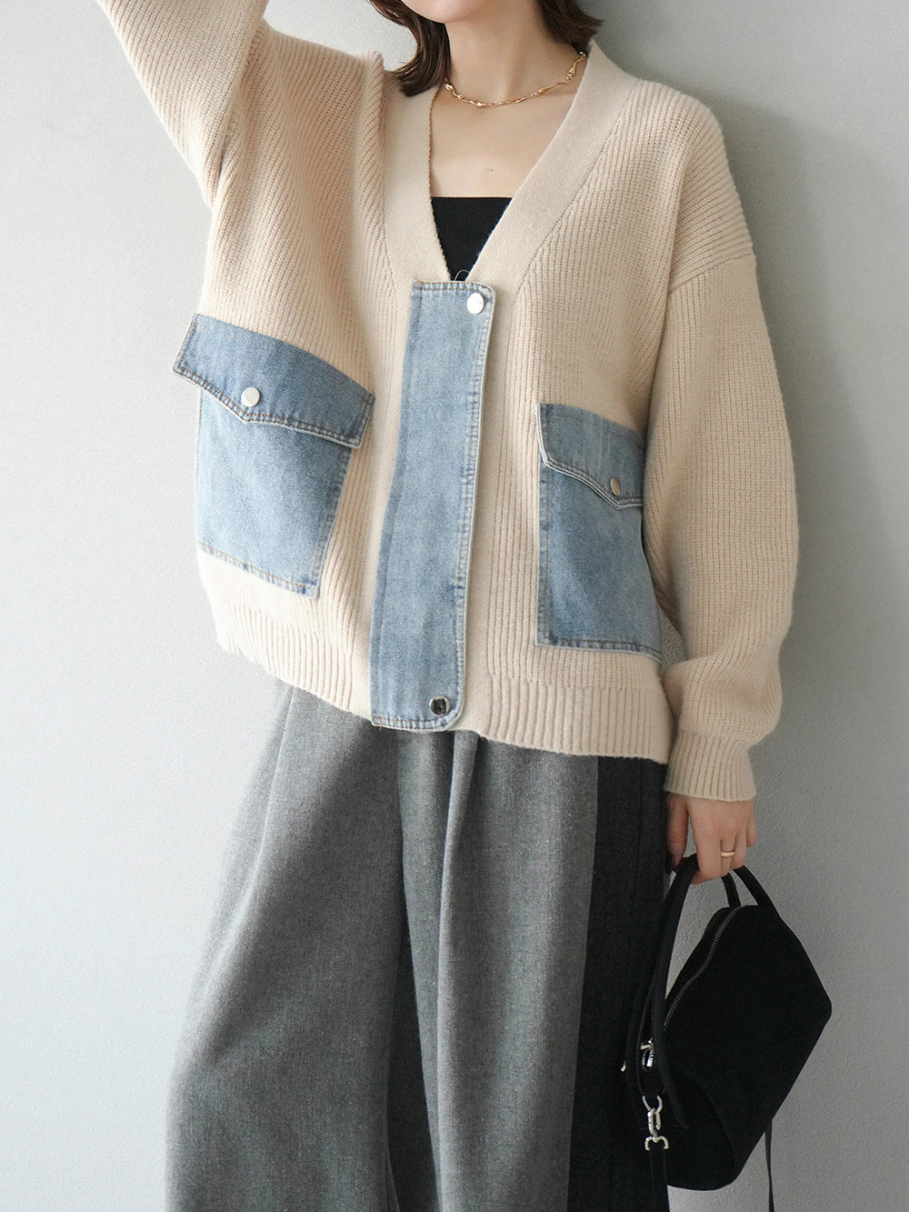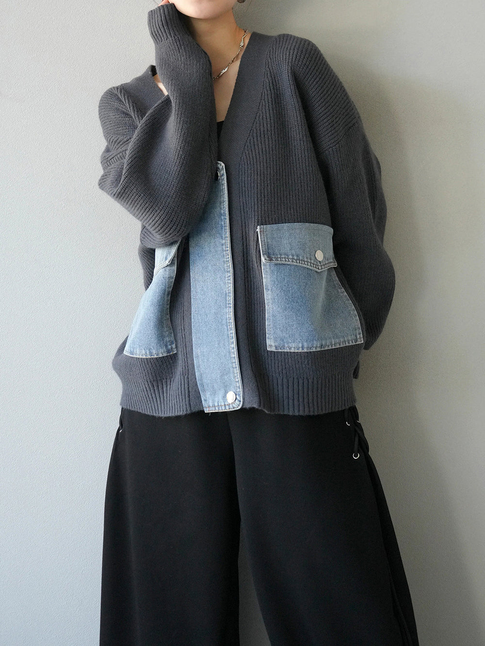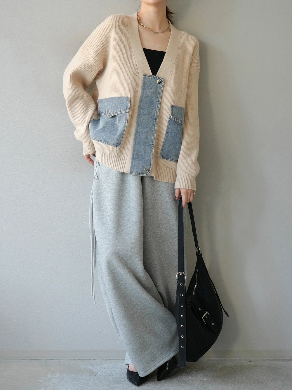 ☆By adding denim details to a simple ribbed knit, it has been created as a casual yet eye-catching piece.