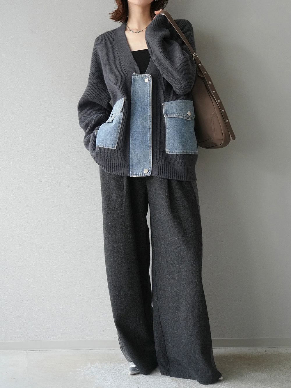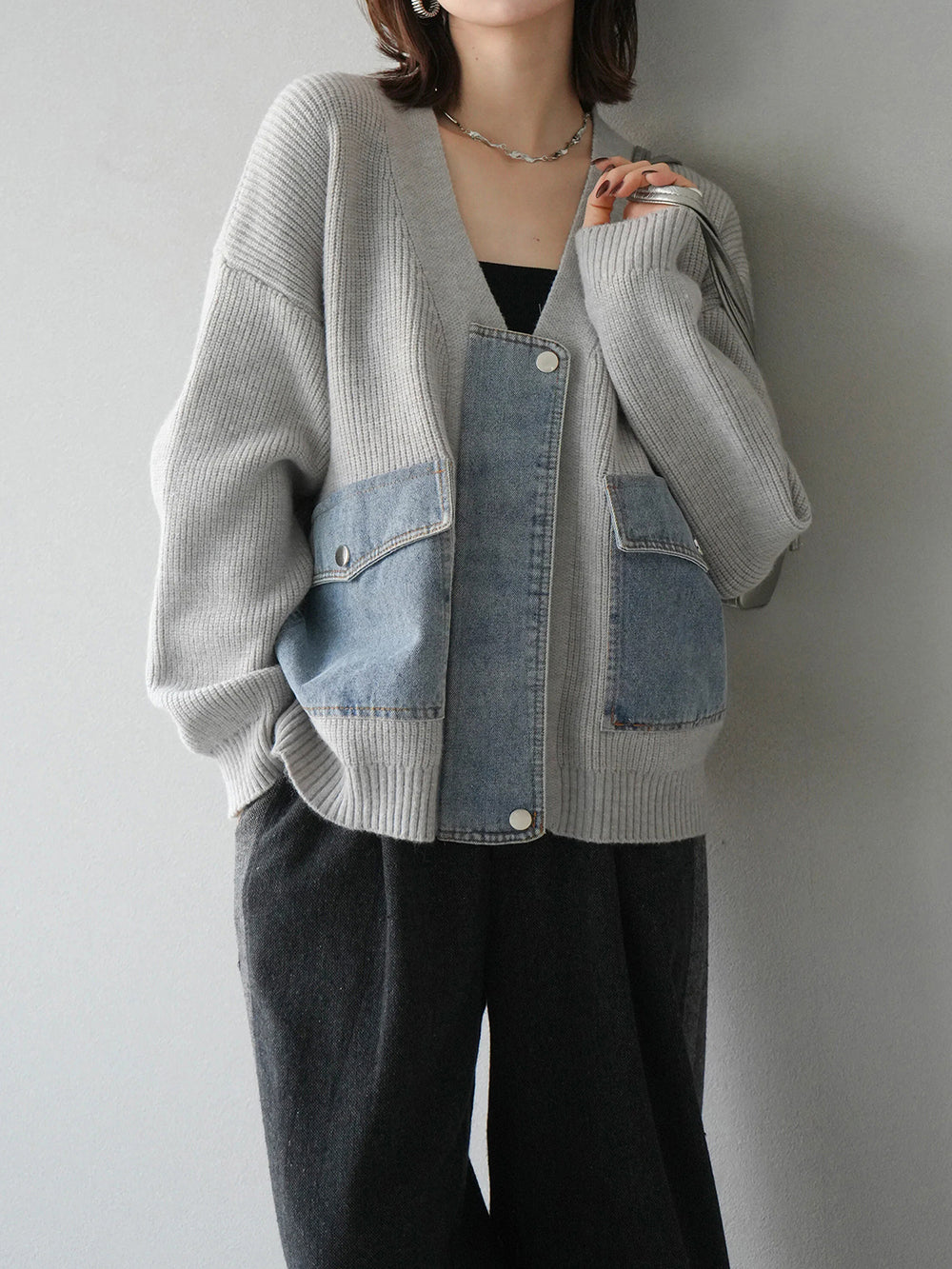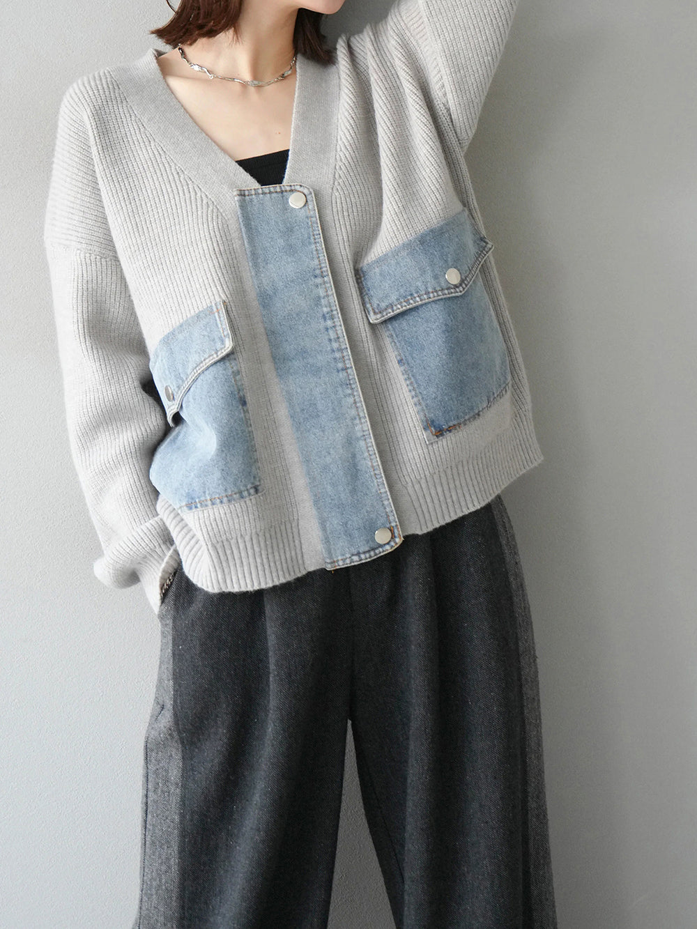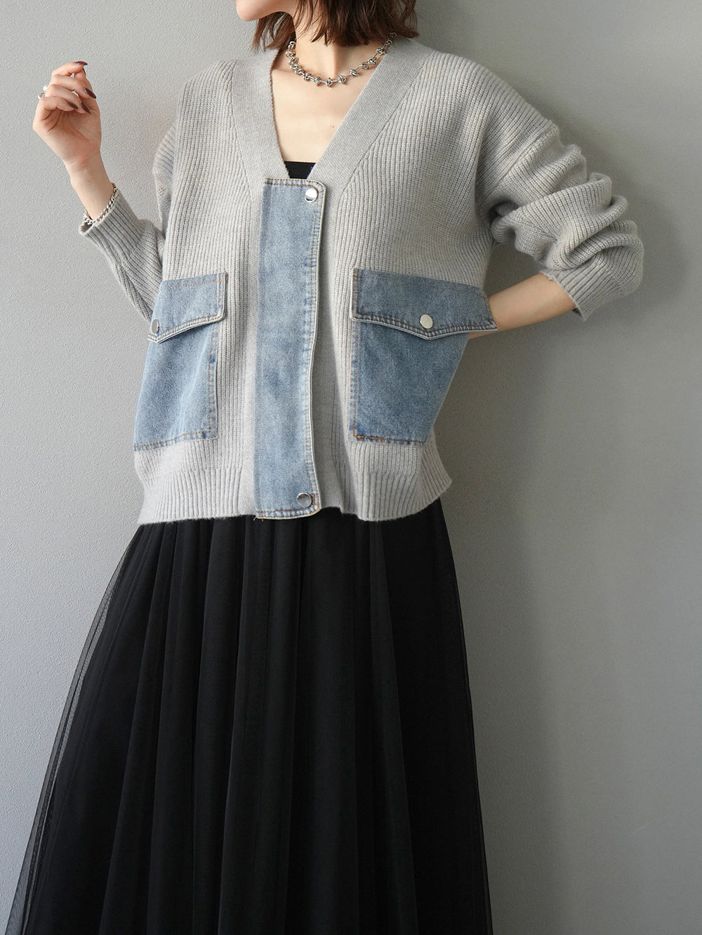 ☆By adding denim details to a simple ribbed knit, it has been created as a casual yet eye-catching piece.
