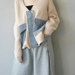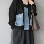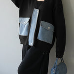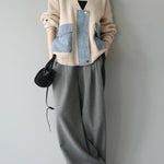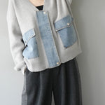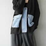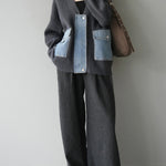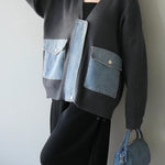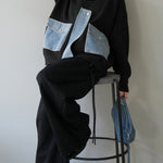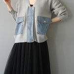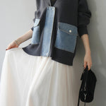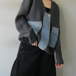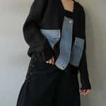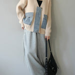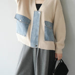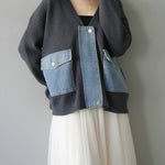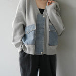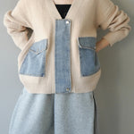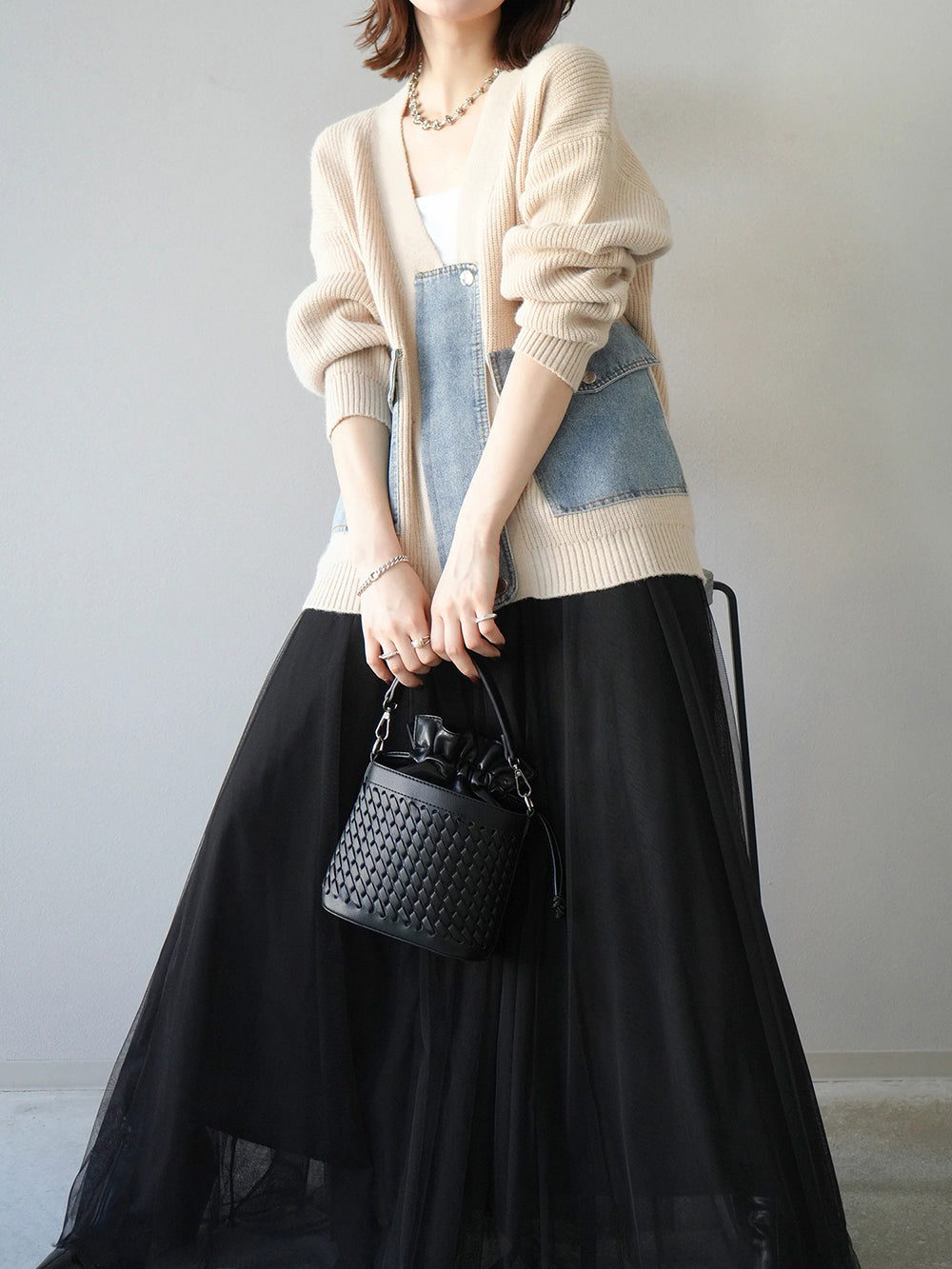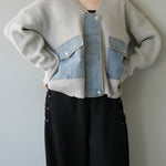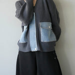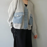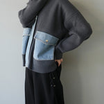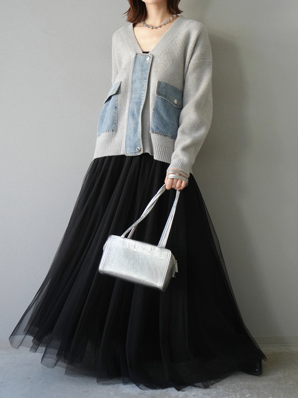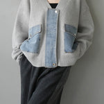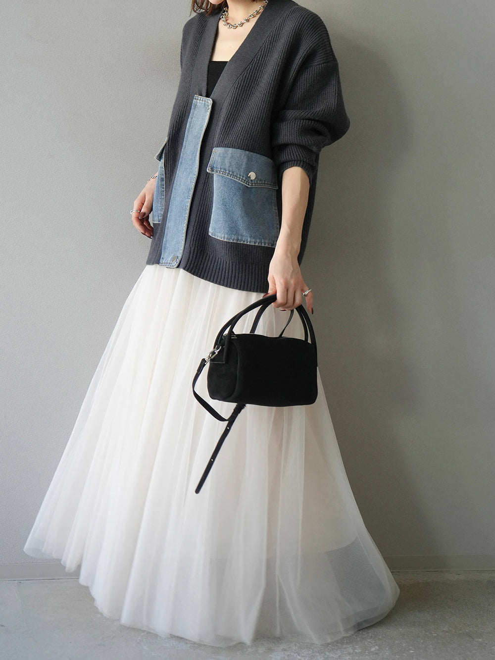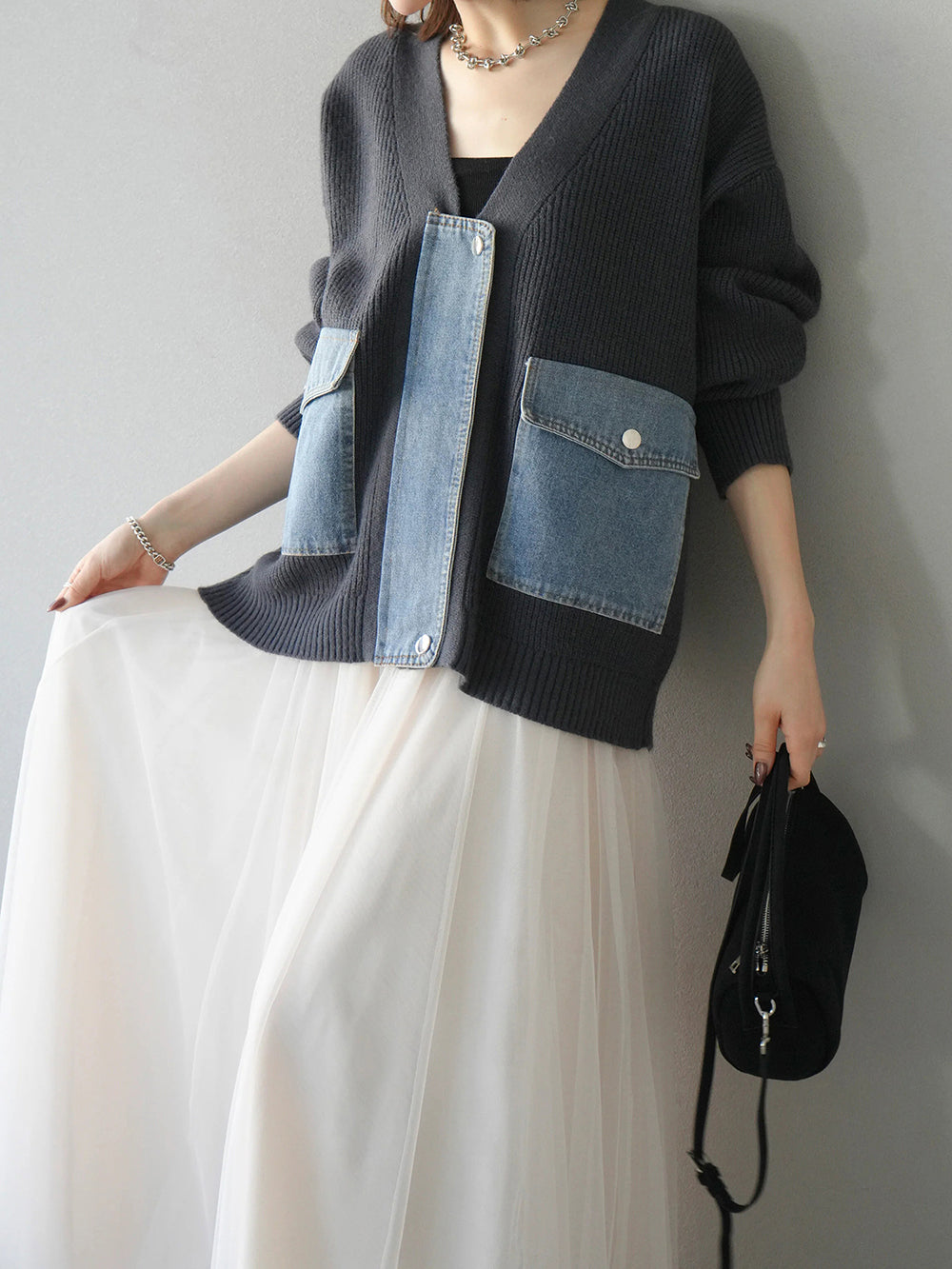☆By adding denim details to a simple ribbed knit, it has been created as a casual yet eye-catching piece.