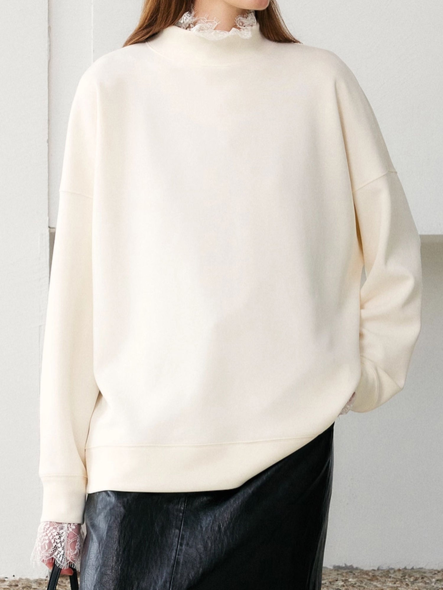 Lace hem oversized sweatshirt