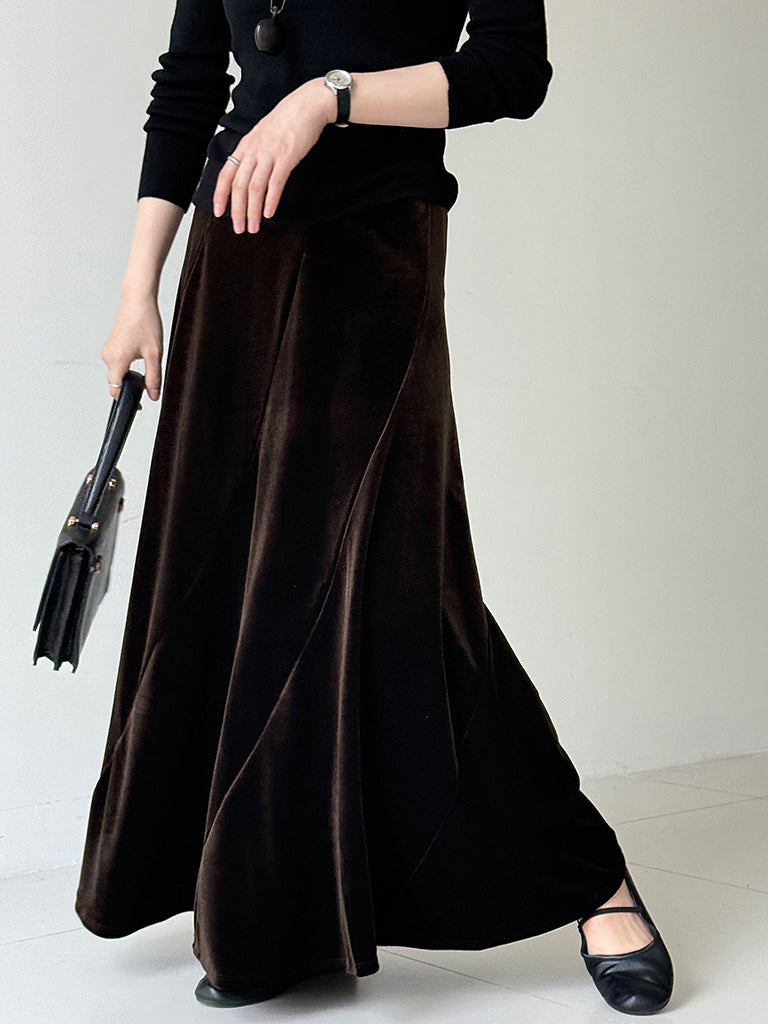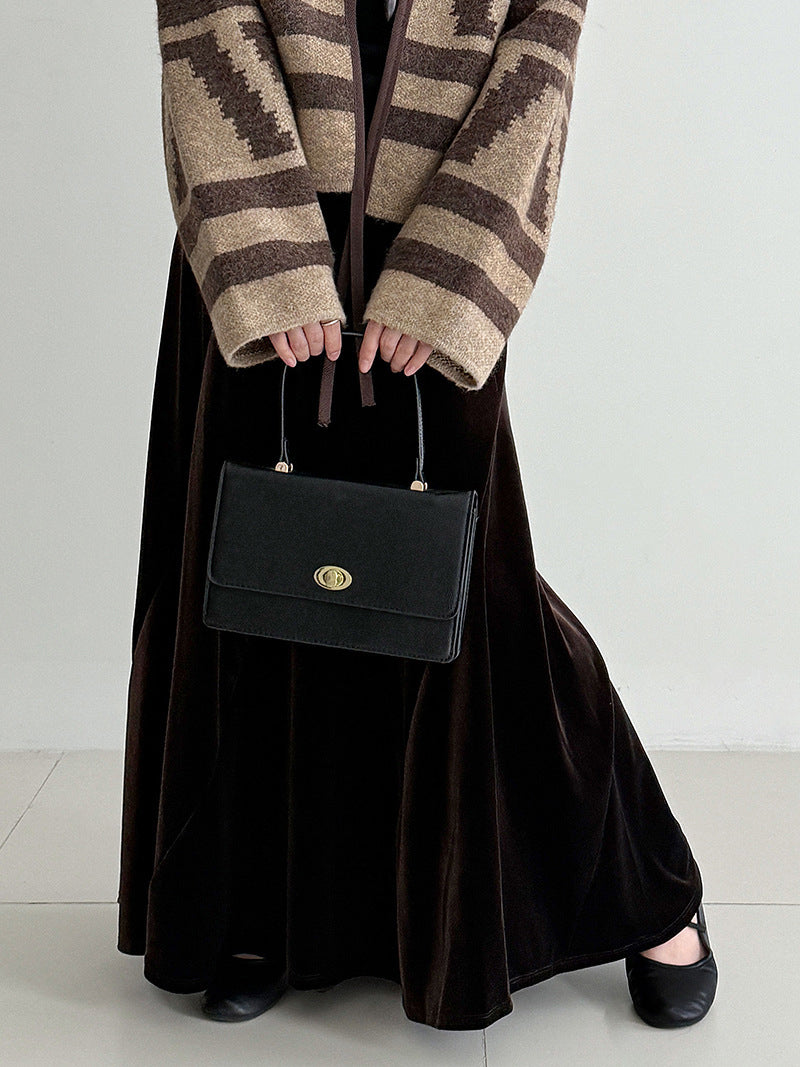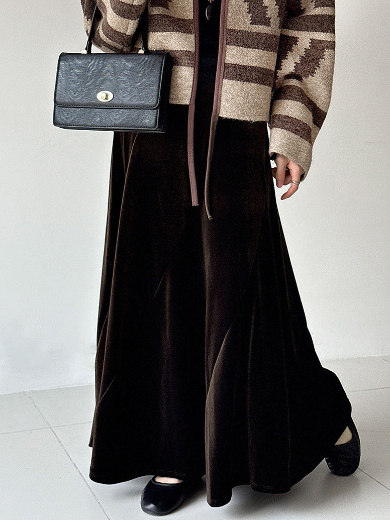 Wide-leg belted knit + glossy satin long skirt set (3 colors)