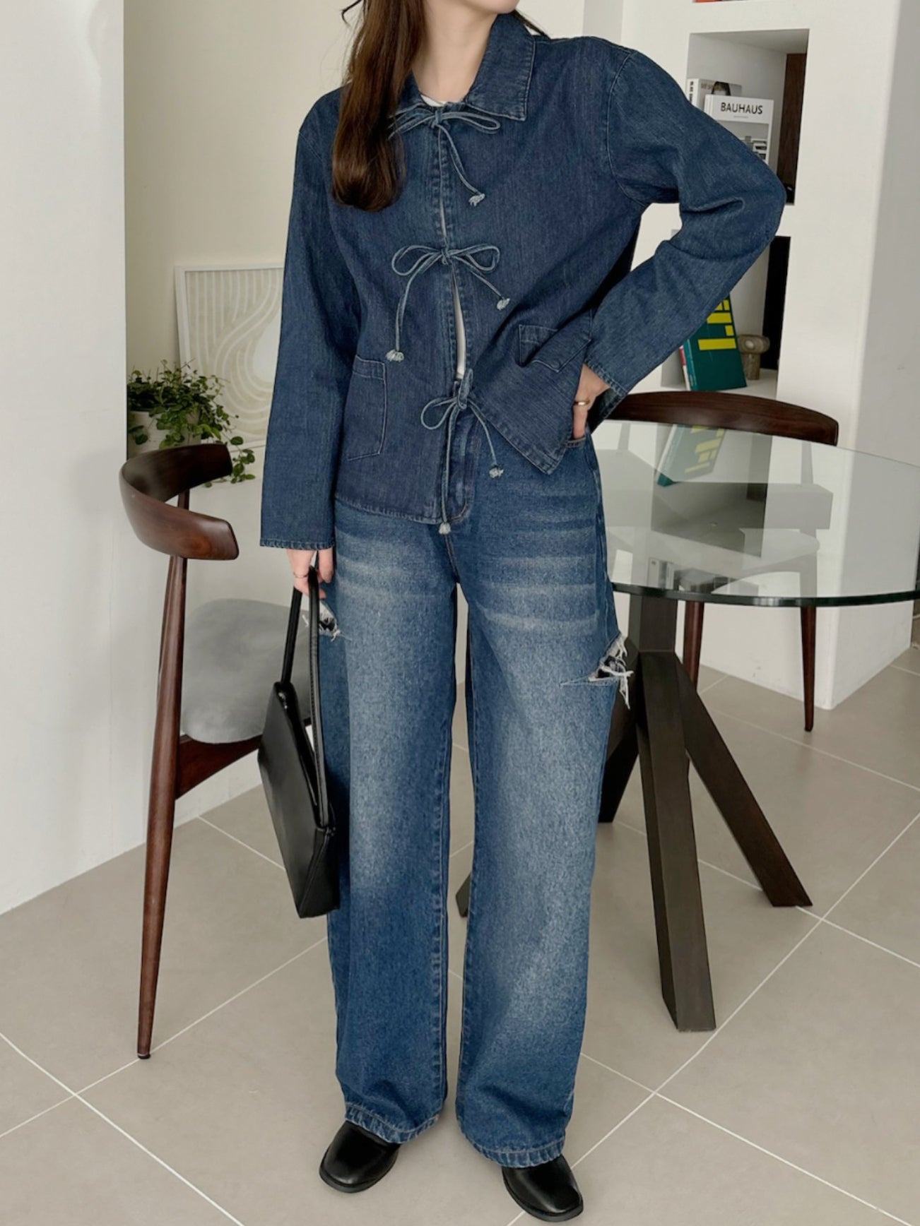 Ribbon design denim jacket (4 colors)