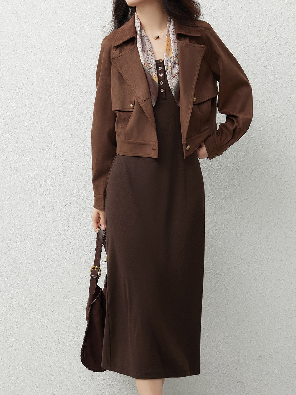 Suede flap short jacket (can be coordinated)