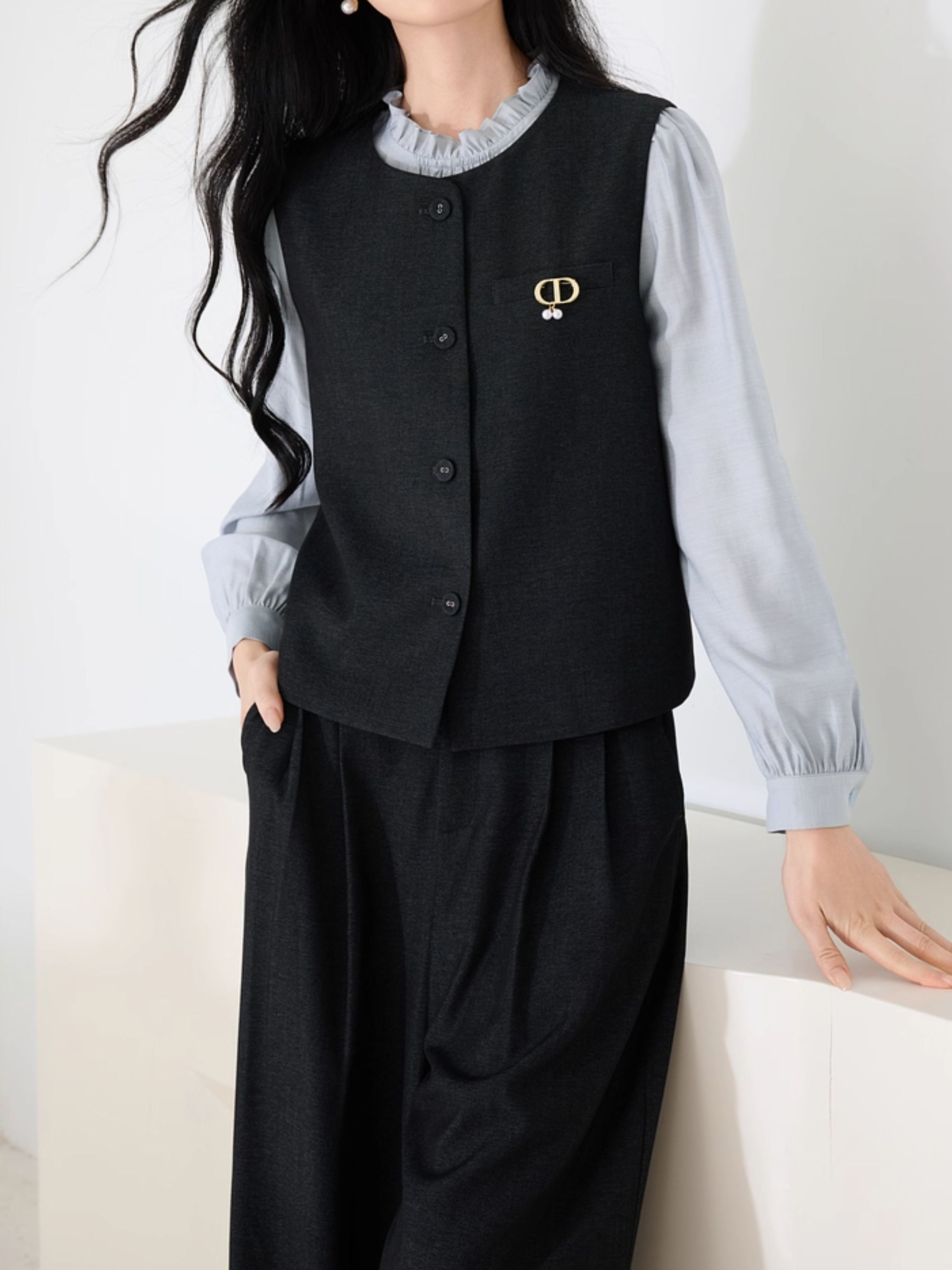 No-collar linen gilet (can be paired)