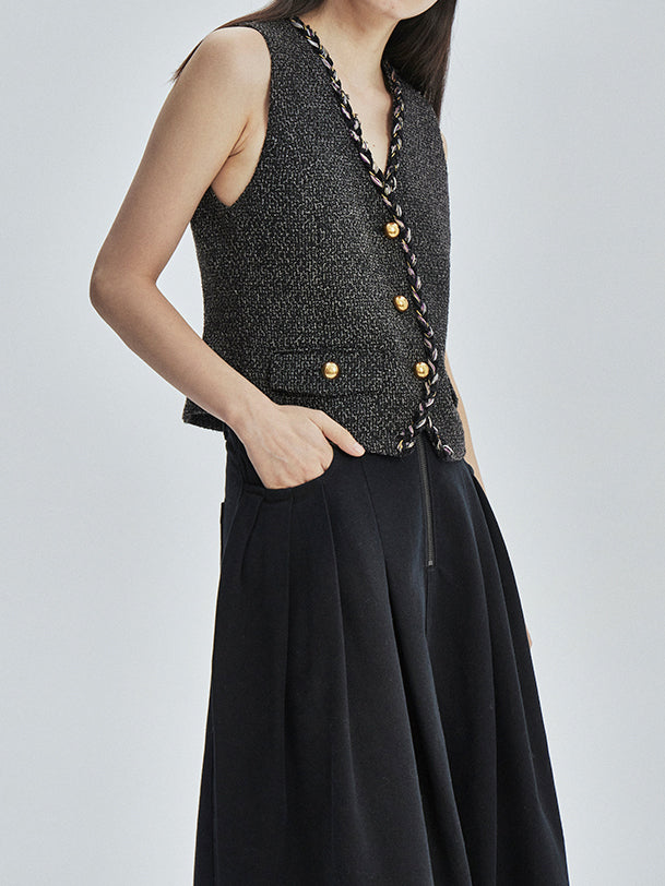 Mixed Yarn Strap Tweed Gilet