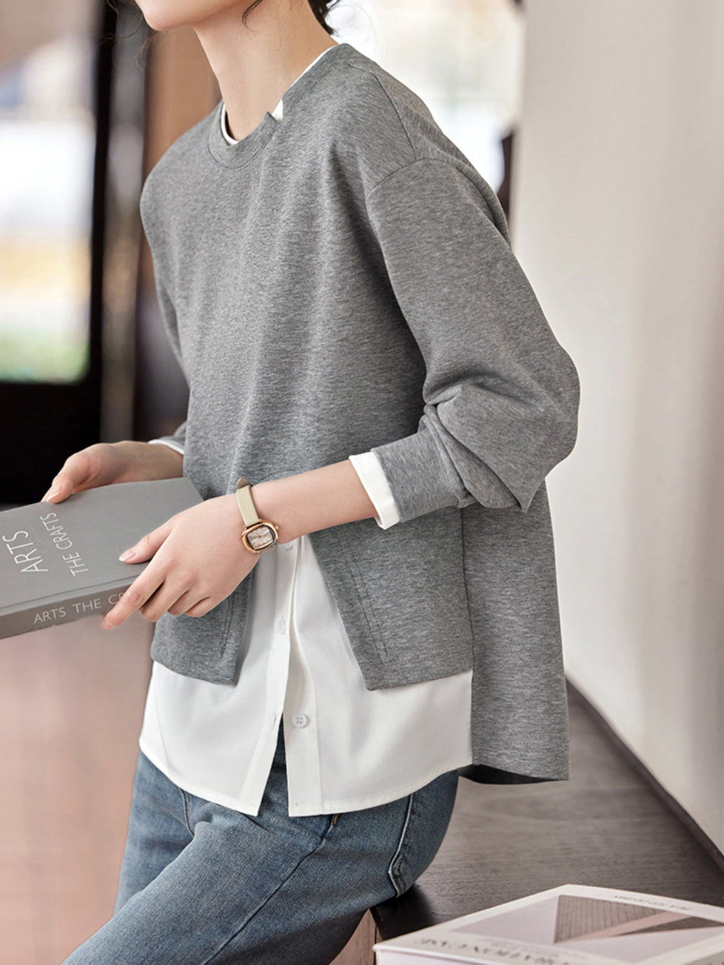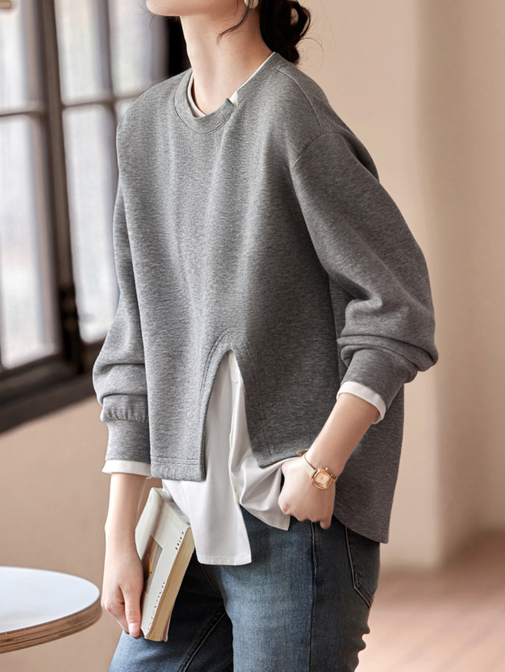 Side slit shirt docking sweatshirt