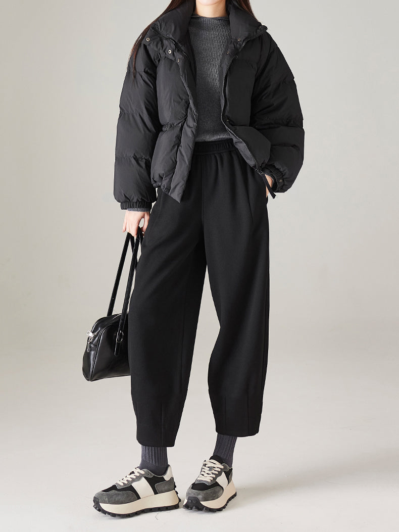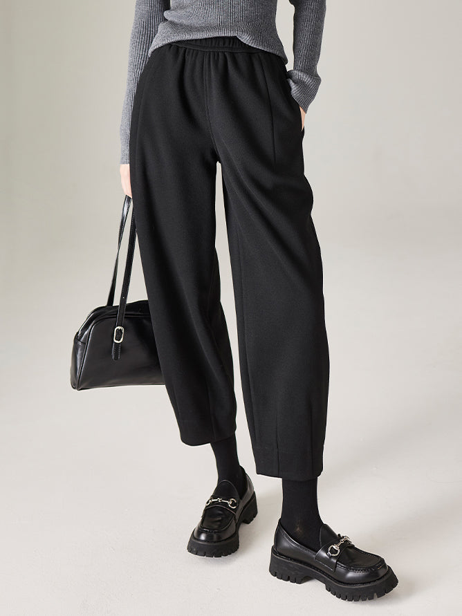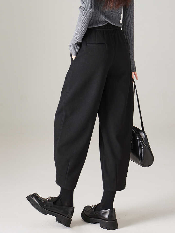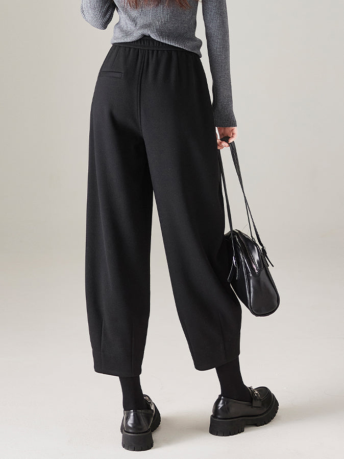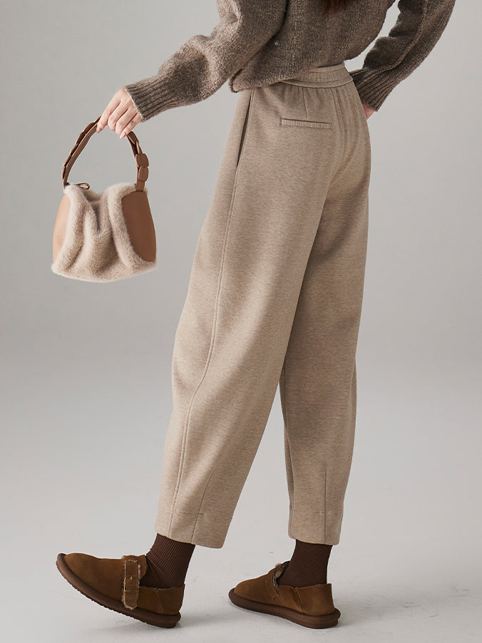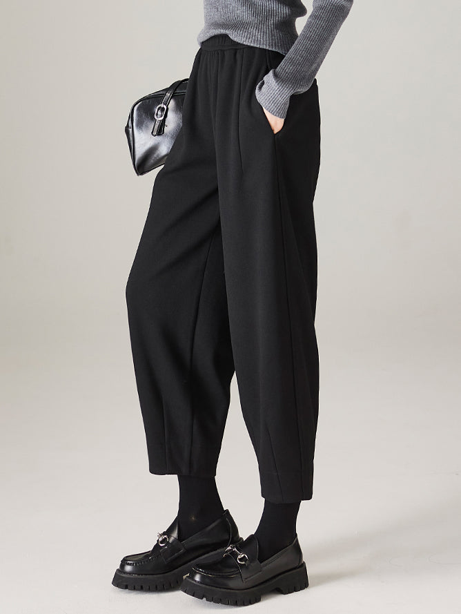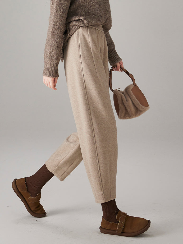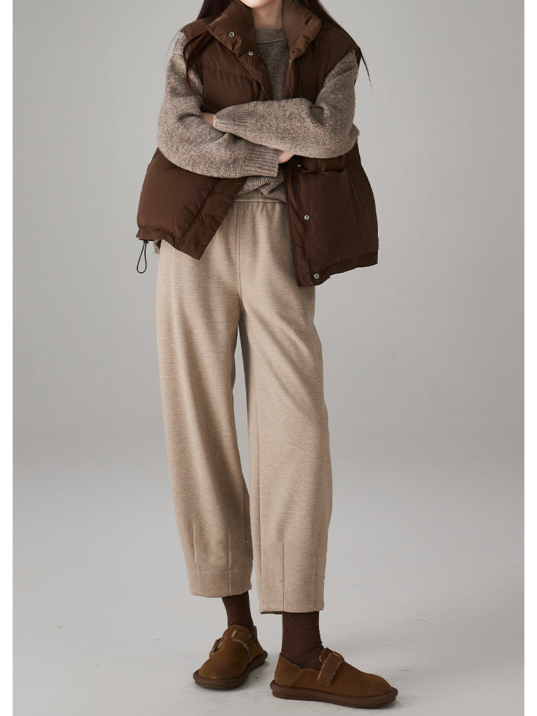 These tuck hem tapered pants feature an elegant silhouette and a distinctive tuck design at the hem.