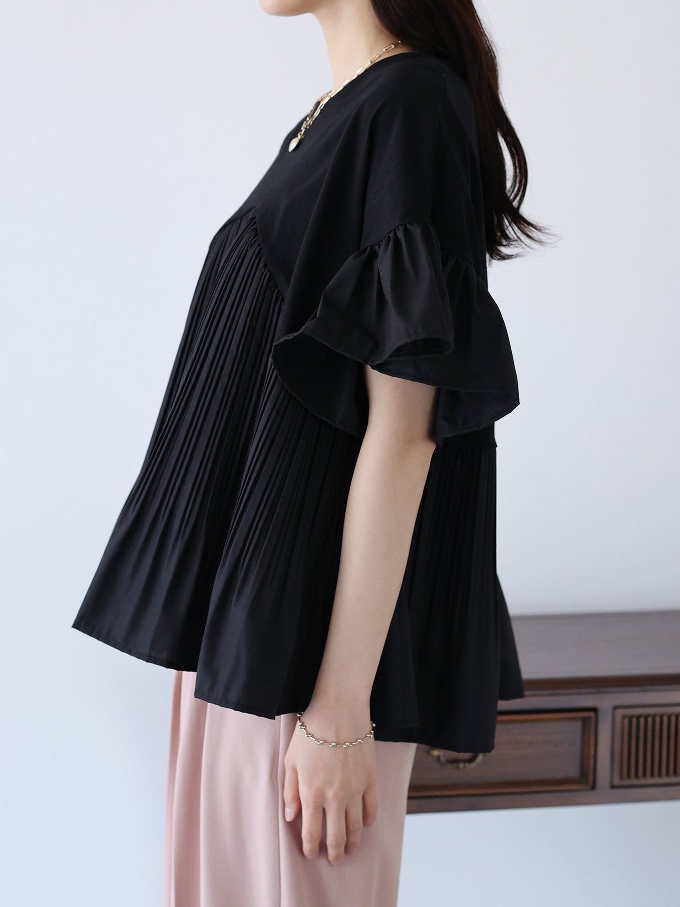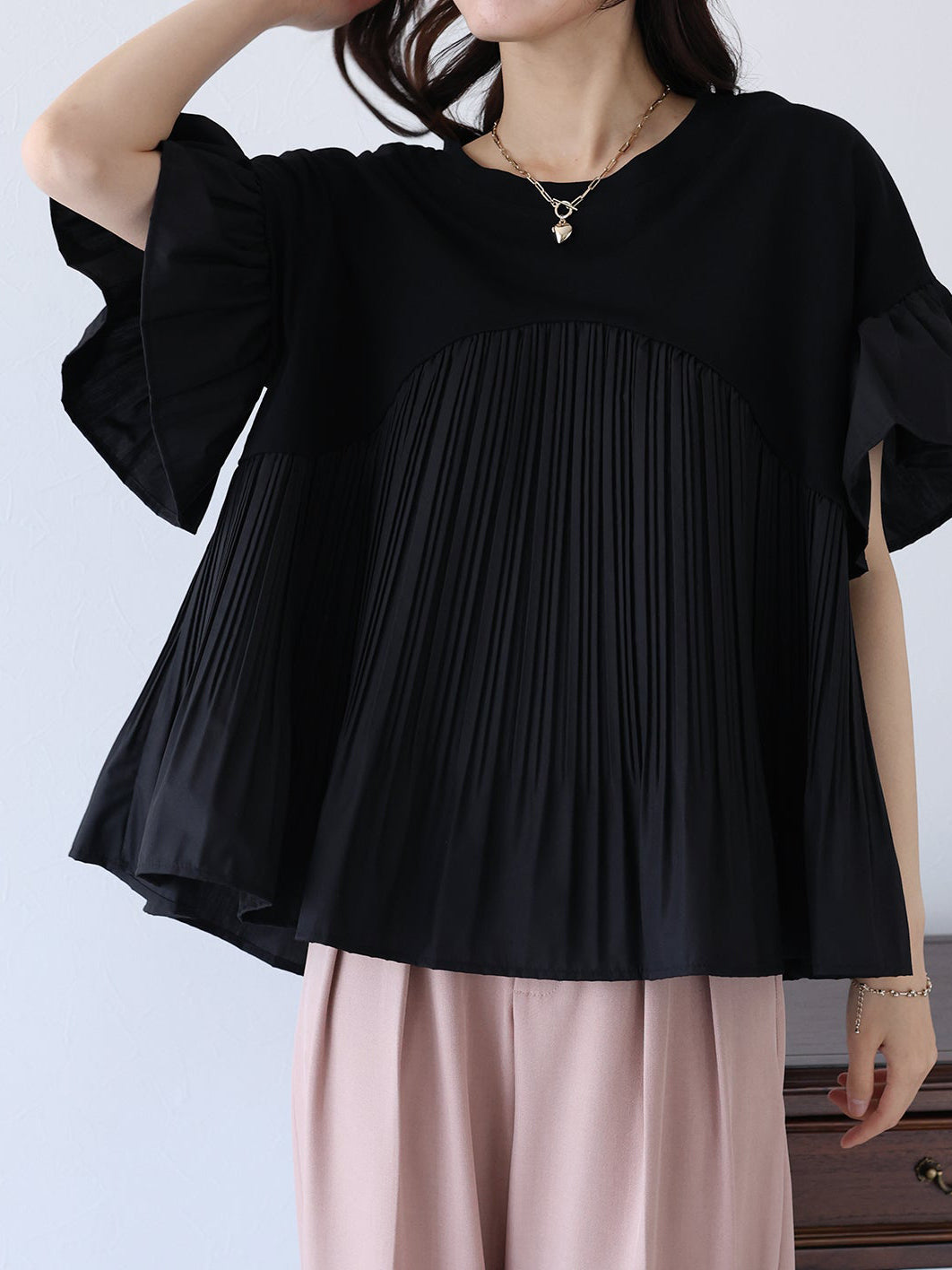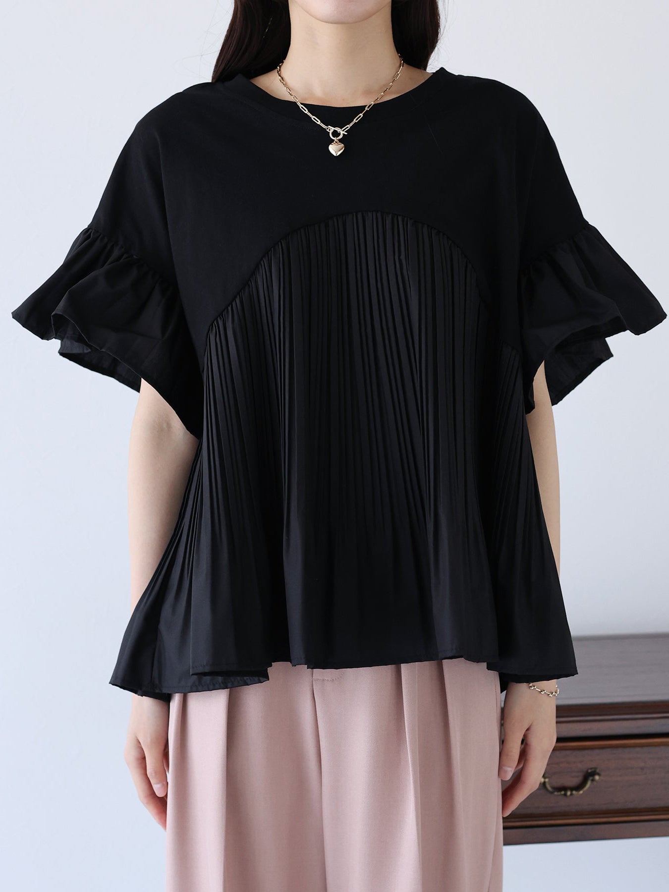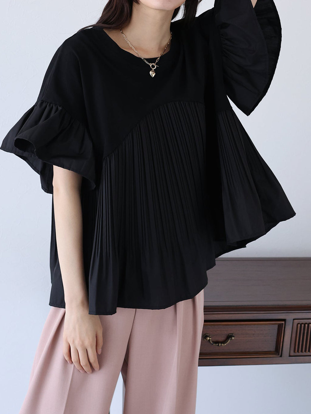 ☆The ruffled sleeves and pleated hem design add a feminine touch.