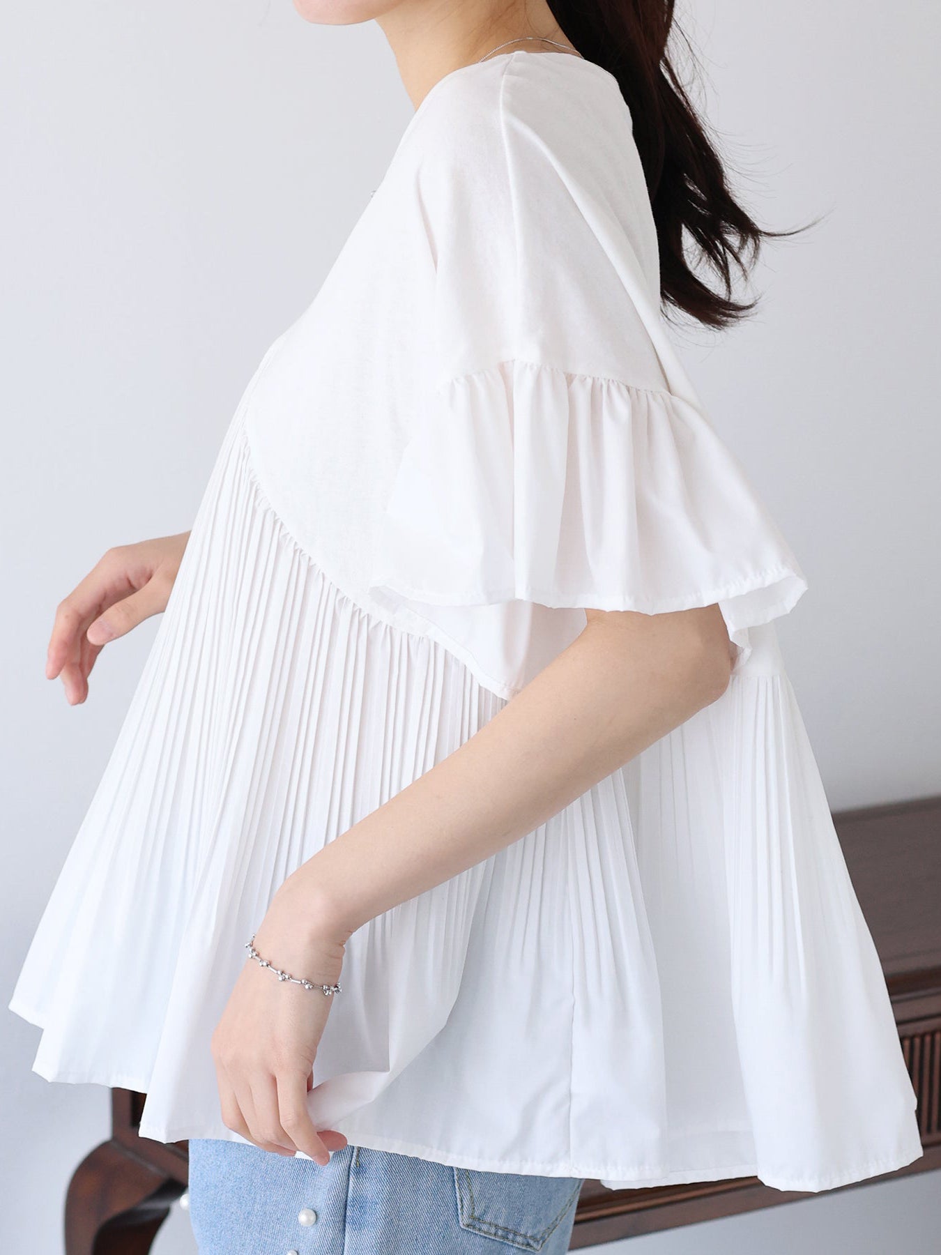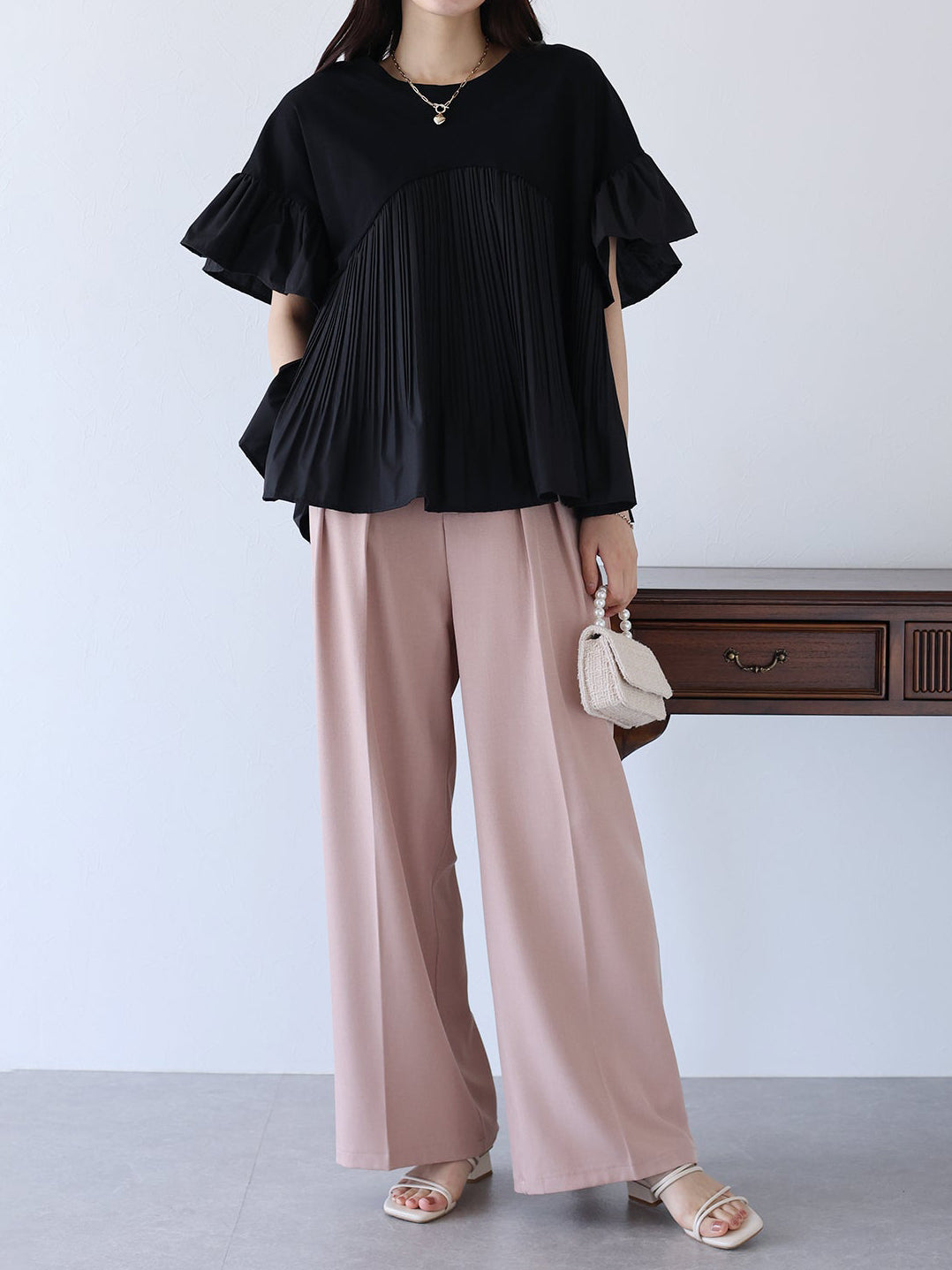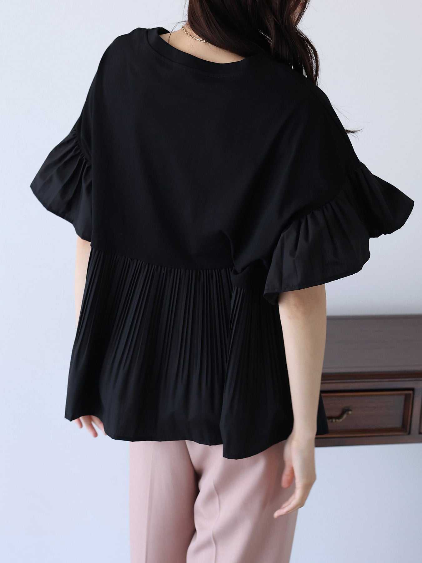 ☆The ruffled sleeves and pleated hem design add a feminine touch.